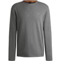 This Boss top features a classic crew neck and long sleeves, offering a regular fit. The solid pattern is complemented by a subtle logo embellishment, adding a touch of brand identity. Ideal for those seeking a timeless and versatile piece. -