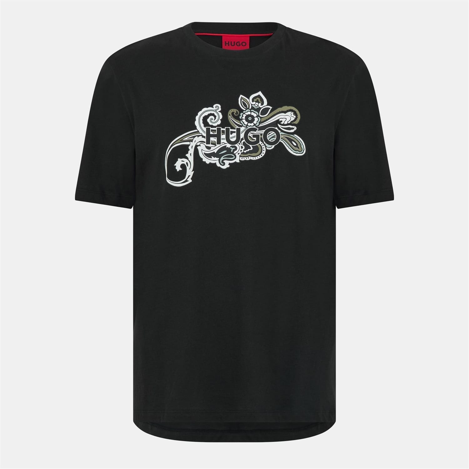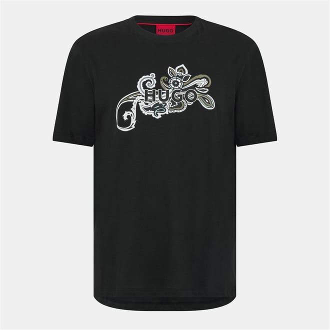 This Hugo top features a regular fit with a crew neck and short sleeves. The graphic print adds a stylish touch, while the logo embellishment provides a subtle brand detail. Perfect for casual wear, this top combines comfort and style effortlessly. -