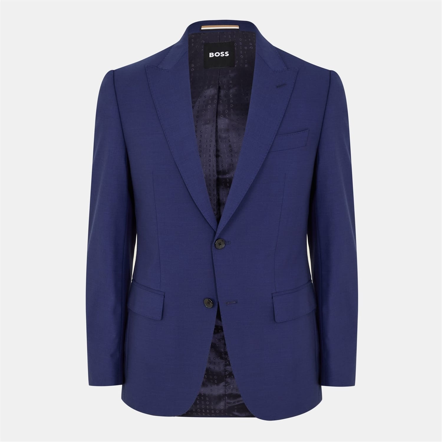 This Boss suit jacket from the formal collection features a notch collar and a straight hem. It is designed with a button closure and a regular fit, offering a sleek silhouette. The solid pattern and subtle logo embellishment add a touch of sophistication to this two-piece set. -