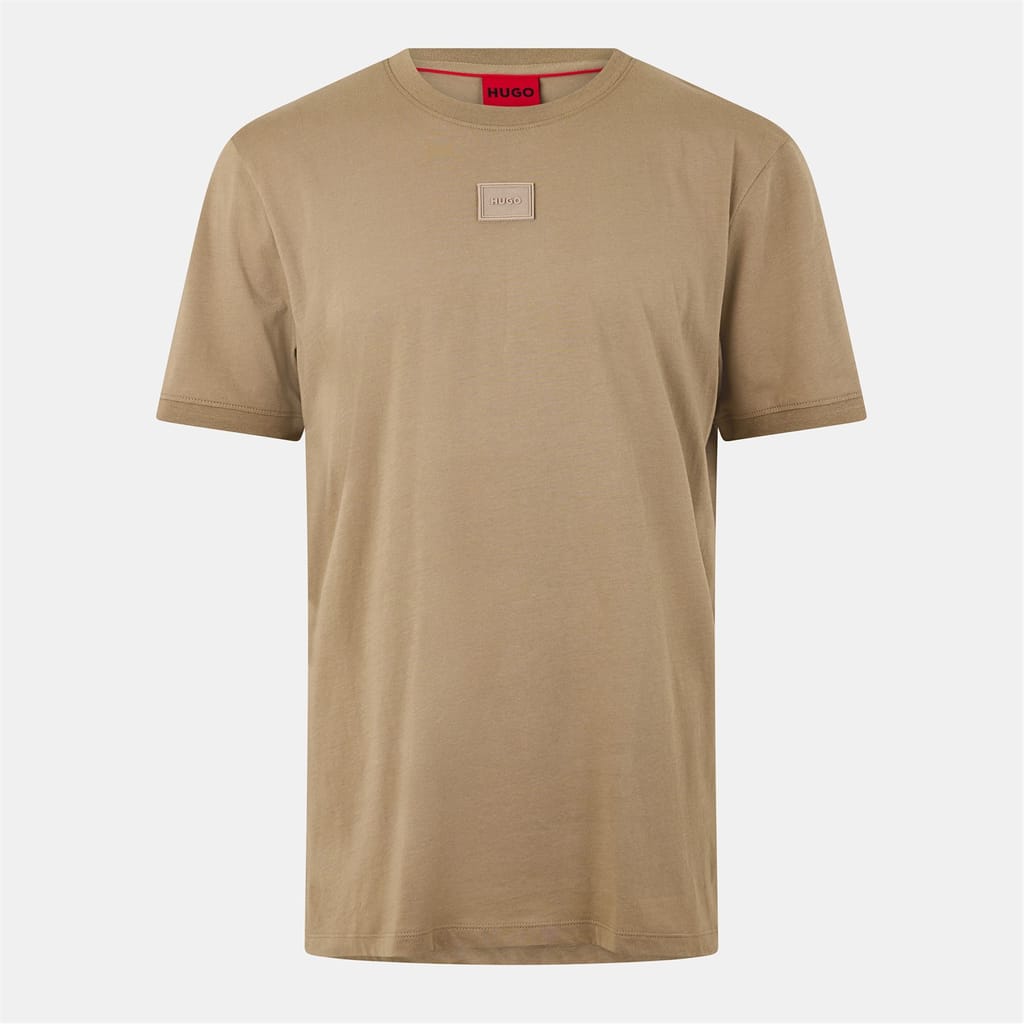 This Hugo top is a casual essential, featuring a regular fit and short sleeves. The solid pattern and crew neck design offer a classic look, while the logo embellishment adds a touch of brand identity. Perfect for everyday wear, this top combines style and comfort effortlessly. -