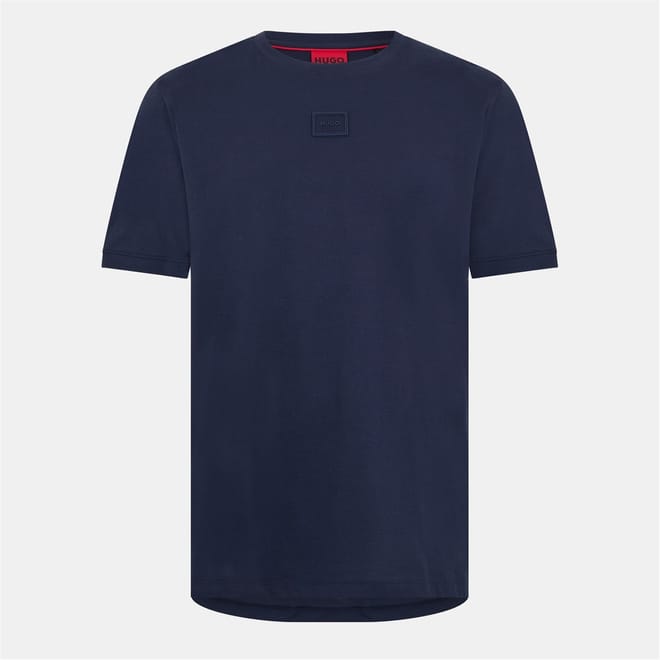 This Hugo top is a versatile addition to your casual collection. Designed with a regular fit, it features a crew neck and short sleeves, making it suitable for all seasons. The solid pattern is complemented by a subtle logo embellishment, adding a touch of brand identity to this classic piece. -