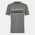 This Boss top features a regular fit with a classic crew neck and short sleeves. The solid pattern is complemented by subtle logo lettering, adding a touch of brand identity to the design. -