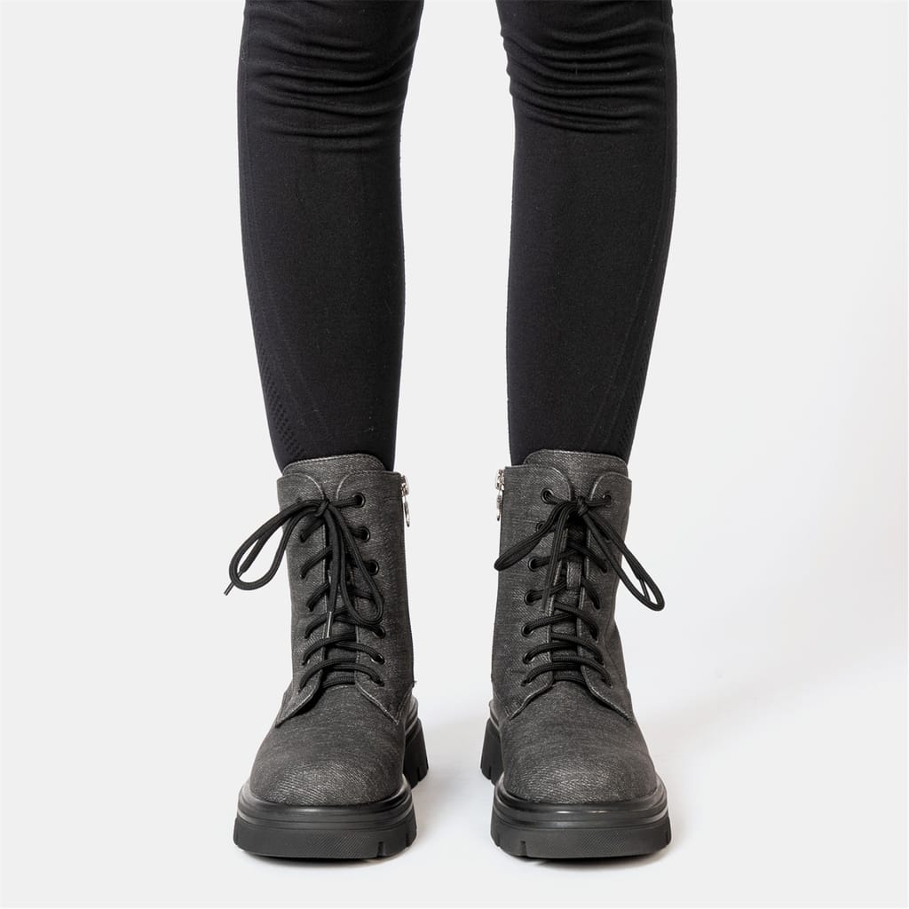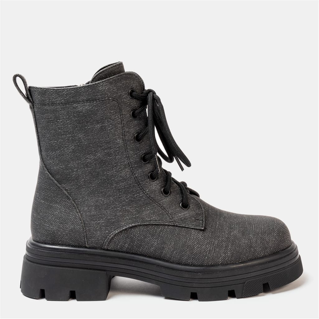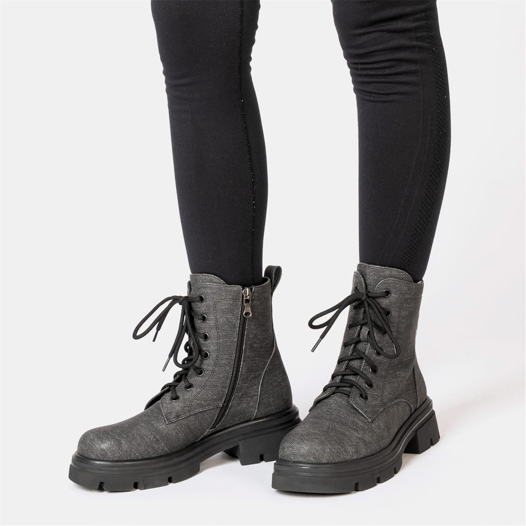 These pairs of Miso Bella Biker Boots are for all season, Fasten them with inside zip and adjust the laces for perfect comfort all day long, These denim print boots will look great with a pair of jeans or skirts.