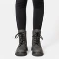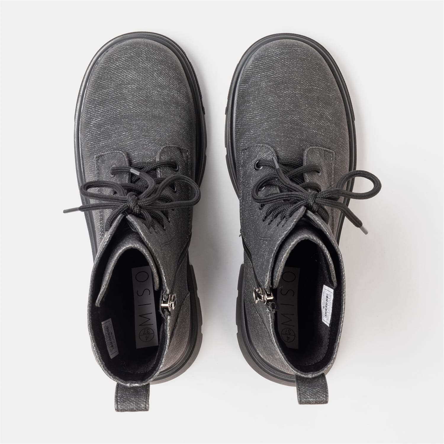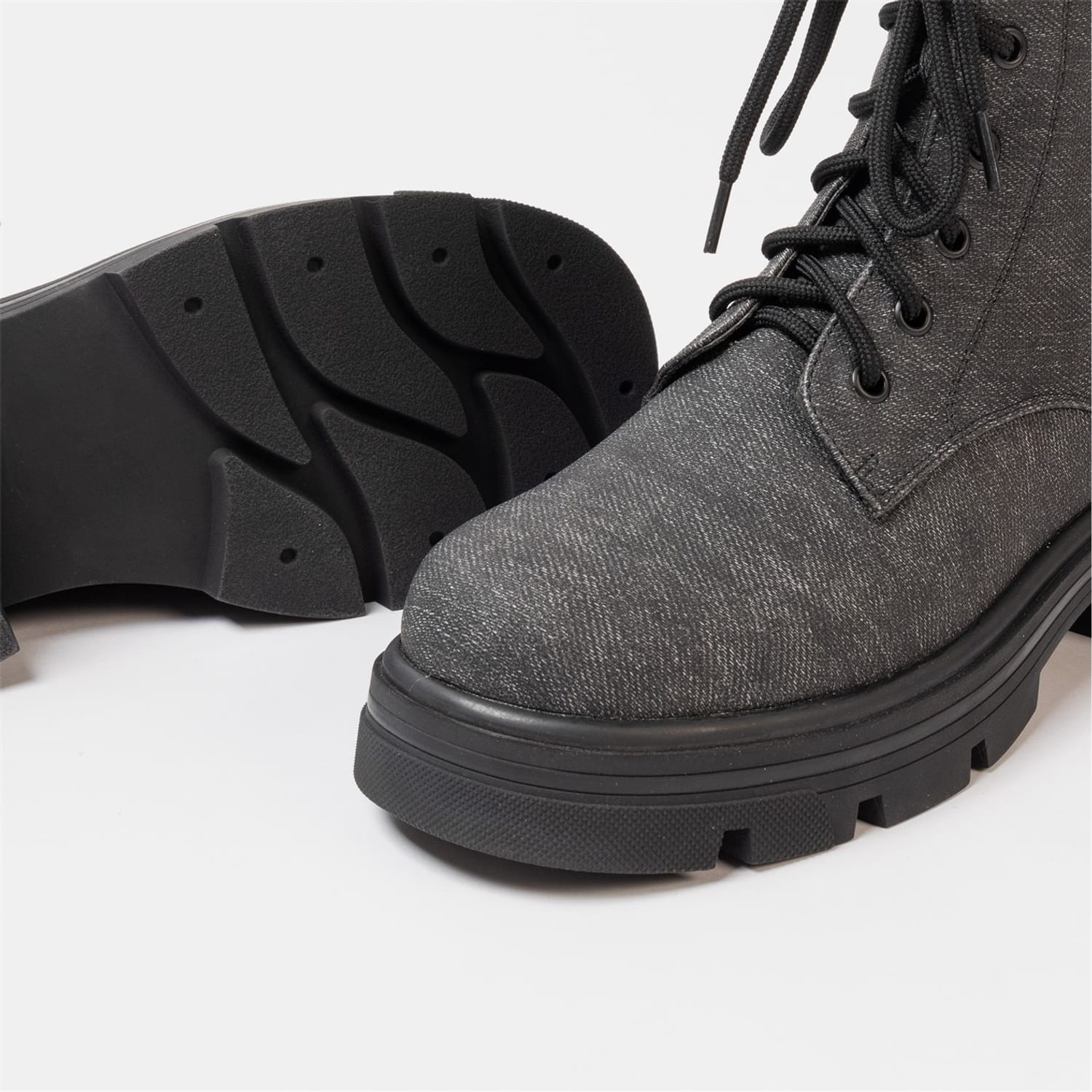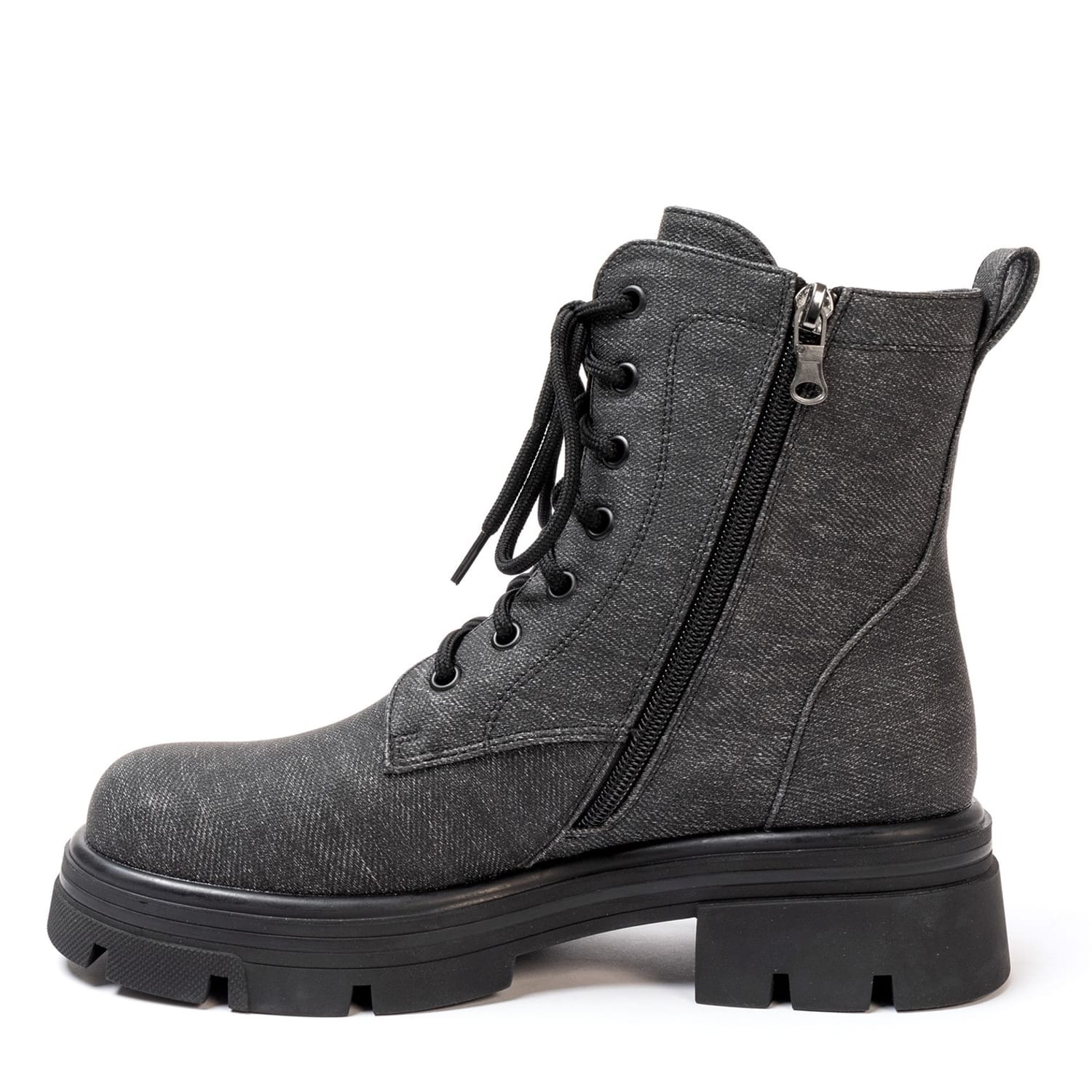 These pairs of Miso Bella Biker Boots are for all season, Fasten them with inside zip and adjust the laces for perfect comfort all day long, These denim print boots will look great with a pair of jeans or skirts.