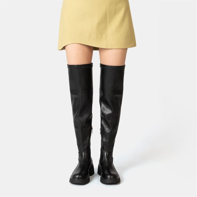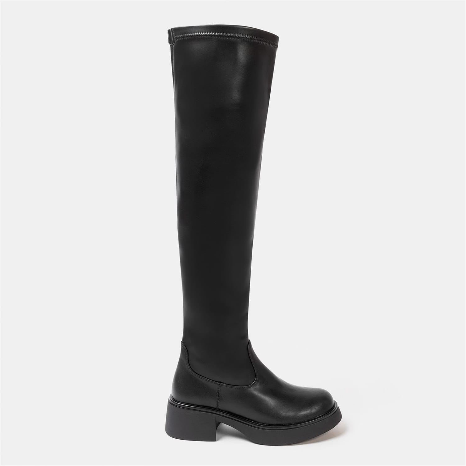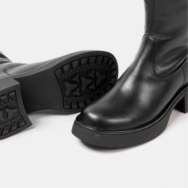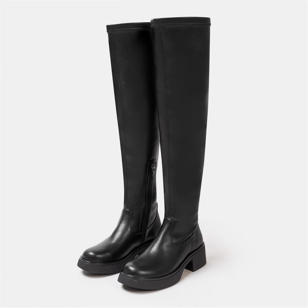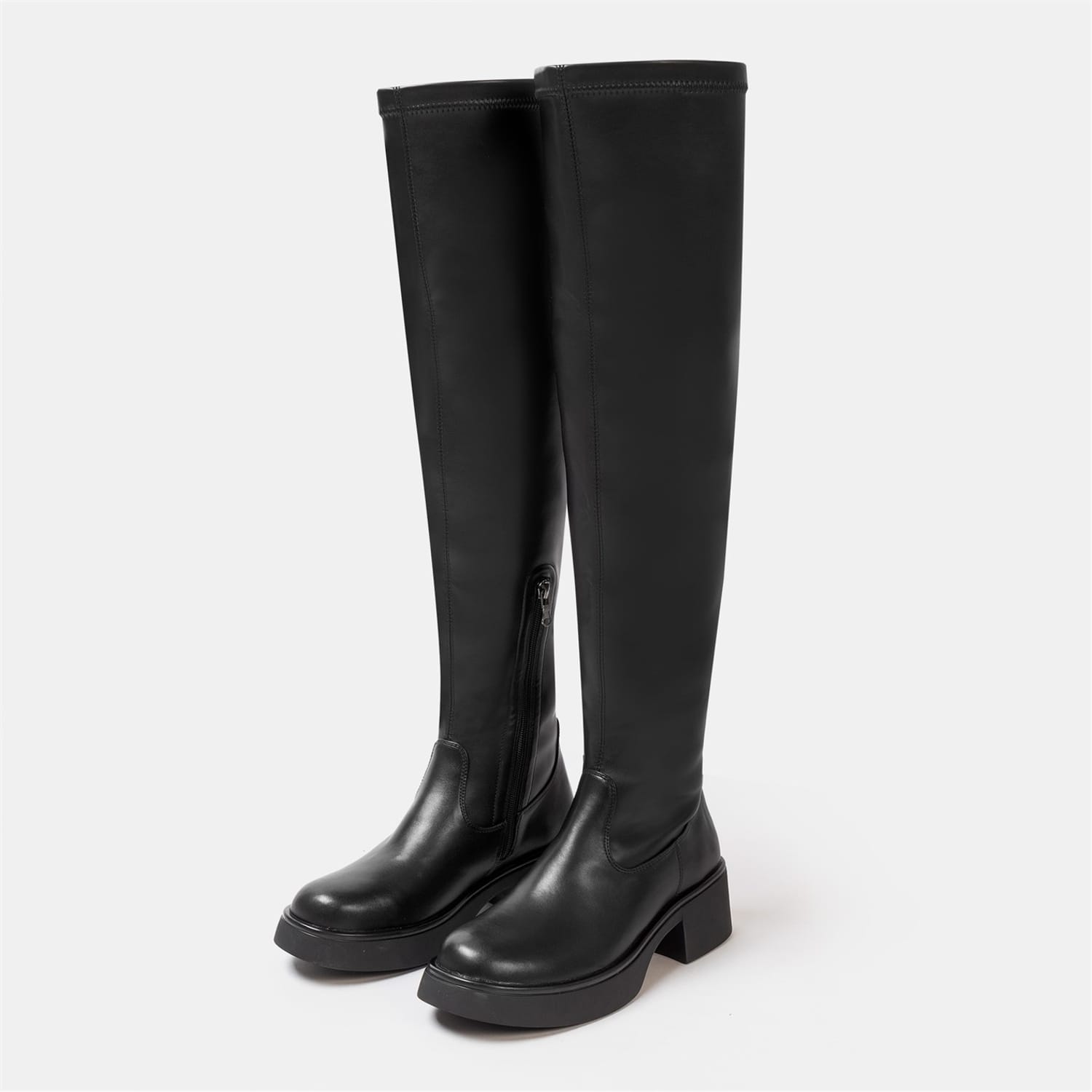 These basic over the knee ladies boots are very soft and stretchable. Low block heel and inner zip. The boots are perfect for both formal and casual occasions..