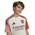 This adidas top features a crew neck and short raglan sleeves, offering a regular fit. The design showcases a striking color block pattern with prominent lettering and a logo embellishment, adding a touch of authenticity. As a licensed piece, it combines style and brand recognition effortlessly. -