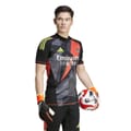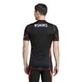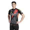 This adidas top is perfect for summer with its short raglan sleeves and slim fit. Featuring a v-neck and a striking graphic print, it is part of the sporting activity collection. The licensed design is embellished with a logo, making it a stylish choice for any casual occasion. -