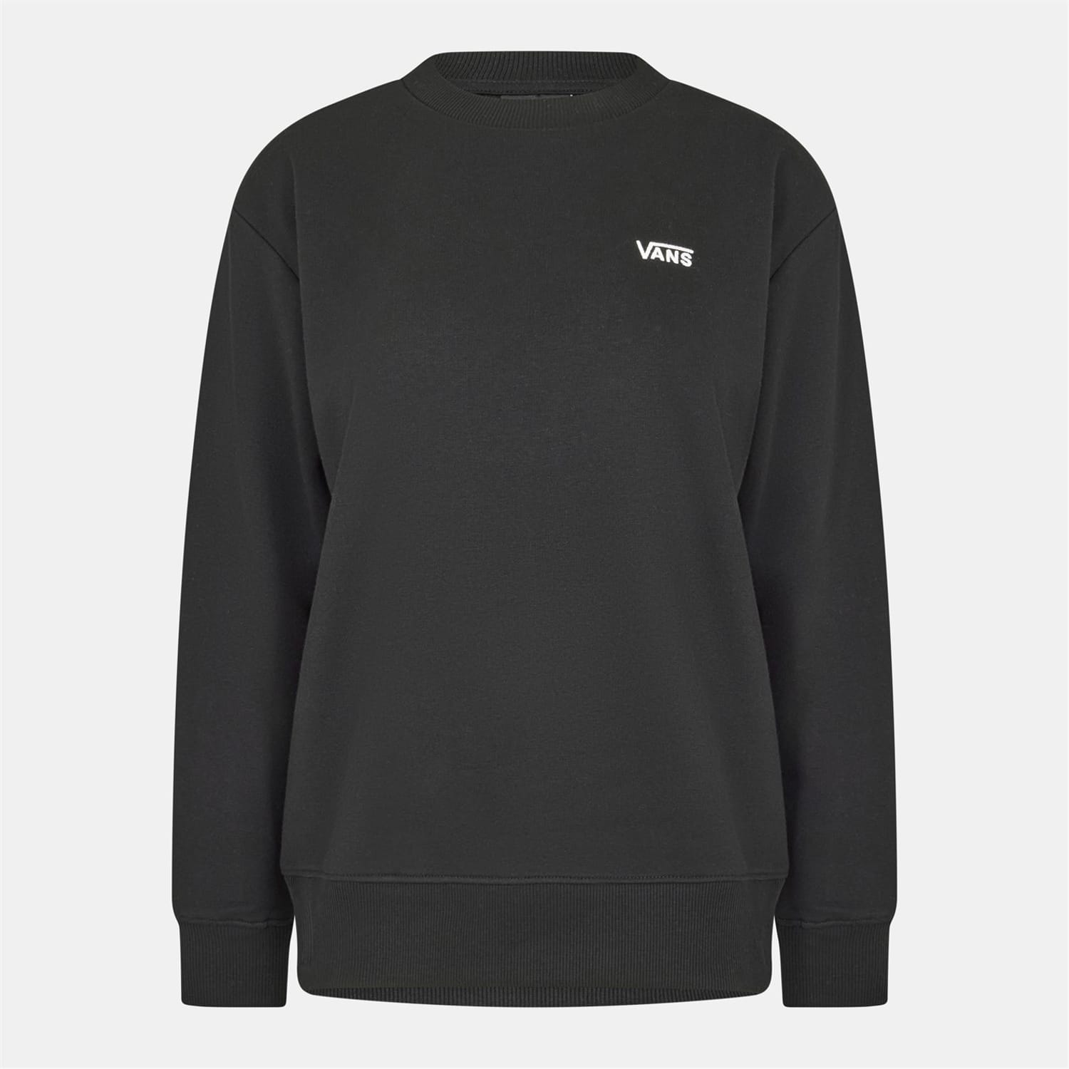 This Vans top is a casual staple featuring a crew neck and long sleeves. Designed with a regular fit, it includes ribbed cuffs and a ribbed collar for added comfort. The solid pattern is complemented by a subtle logo embellishment, making it a versatile addition to any wardrobe. -