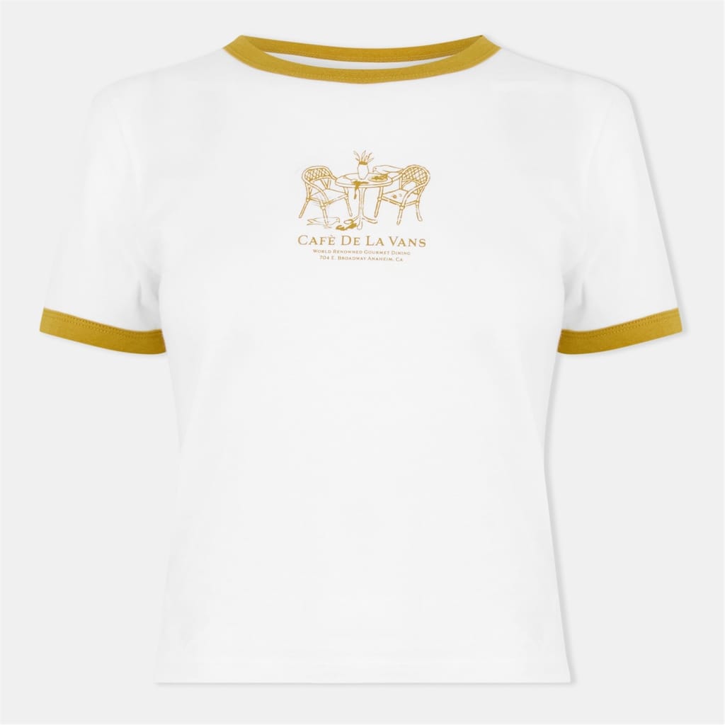 This Vans top features a regular fit with a crew neck and short sleeves. The ribbed collar and cuffs add a touch of detail, while the graphic print and logo embellishment enhance its casual appeal. Perfect for those who appreciate a blend of style and comfort. -