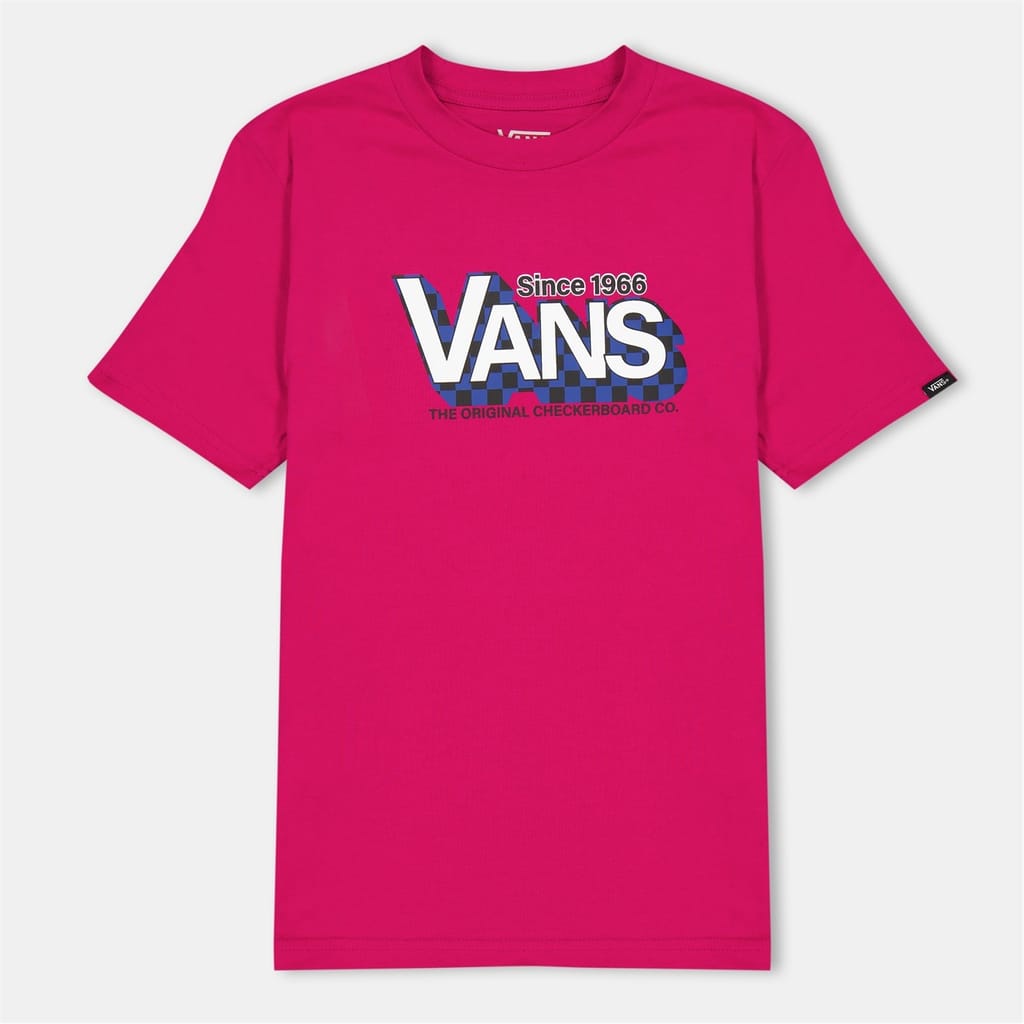 This Vans kids' top features a regular fit and a classic crew neck. The short sleeves and checkerboard pattern add a playful touch, while the logo embellishment highlights the brand's signature style. Perfect for casual wear, this top combines comfort and iconic design effortlessly. -