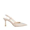 Discover the elegance of Dune London pumps, featuring a sophisticated slingback design. These shoes boast an almond toe and a striking metallic textured pattern, perfect for adding a touch of glamour to any ensemble. Crafted with precision, they offer both style and comfort, making them an ideal choice for those seeking a refined footwear option. -