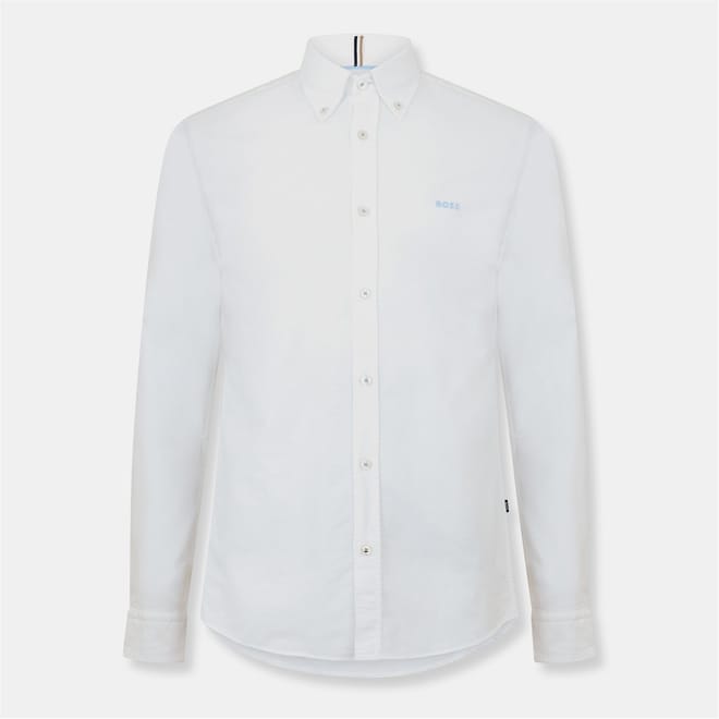 This Boss top features a classic button-down design with long sleeves and a regular fit. The solid pattern adds a timeless touch, making it a versatile addition to any wardrobe. -