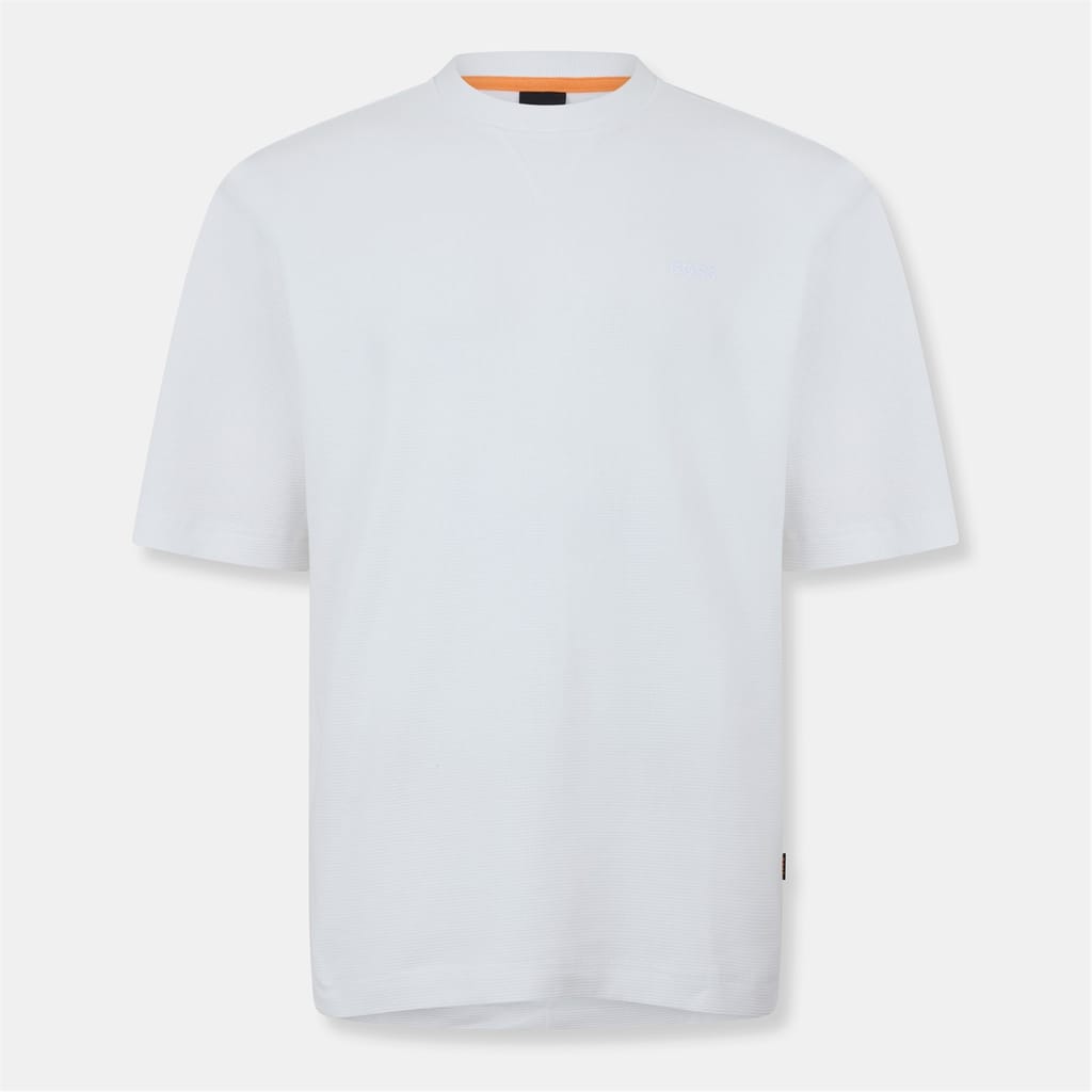 This Boss top features a regular fit and a distinctive waffle pattern. It comes with a crew neck and short sleeves, offering a stylish yet comfortable option for casual wear. -