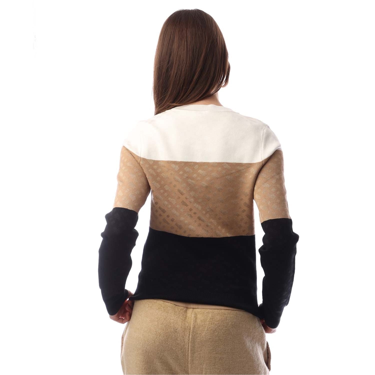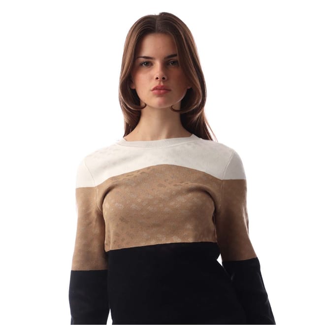 This Boss top features a regular fit with a crew neck and long sleeves. The design showcases a stylish colour block pattern, complemented by ribbed cuffs for added detail. -