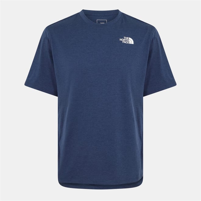 The North Face top is designed for activewear enthusiasts, featuring a heathered pattern and a crew neck. This short-sleeve top offers a regular fit, ensuring comfort during performance activities. The iconic logo embellishment adds a touch of brand recognition to this versatile piece. -