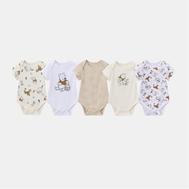 Dress your baby in comfort and style with the Character 5-Pack Short Sleeve Bodysuits. Each set includes five adorable bodysuits, each with its own unique pattern, perfect for mixing and matching. Crafted from 100% soft cotton, these bodysuits are breathable and gentle on delicate skin. Featuring nickel-free popper fastenings, they make dressing and changing quick and fuss-free.