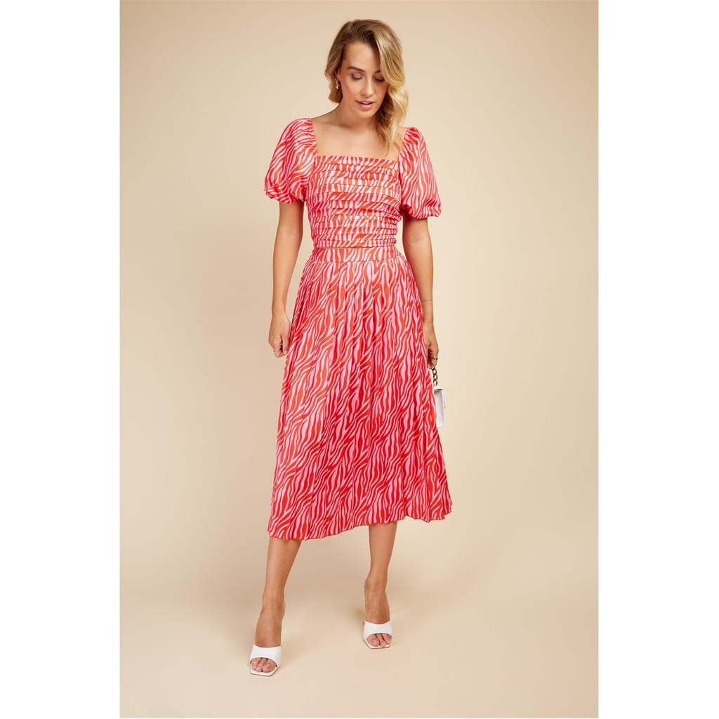 Discover the Little Mistress midi A-line skirt, a standout piece from the casual collection. Featuring a striking zebra pattern, this skirt is designed with a relaxed fit and pleat embellishments for added flair. The convenient zipper closure ensures ease of wear, making it a versatile addition to your wardrobe. -