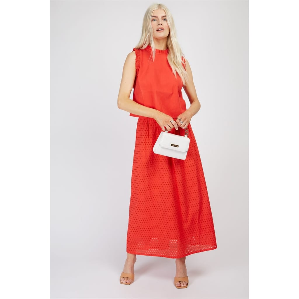 Discover the Little Mistress cropped top, perfect for summer. This sleeveless piece features a high neck and ruffle sleeves, adding a touch of elegance to its solid design. With a regular fit, it's part of the casual collection, making it an ideal choice for warm weather. -