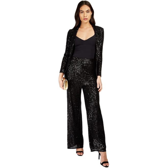 Elevate your party wardrobe with Little Mistress trousers, featuring a wide-leg cut and a stylish zipper closure. These pants are adorned with sequins, adding a touch of glamour to any occasion. Perfect for making a statement, they combine elegance and sophistication effortlessly. -