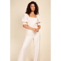 Discover the elegance of Little Mistress with this jumpsuit, featuring a square neck and three-quarter puff sleeves. The relaxed fit ensures comfort, while the ruched embellishments add a touch of sophistication. Perfect for those seeking a stylish yet comfortable outfit. -