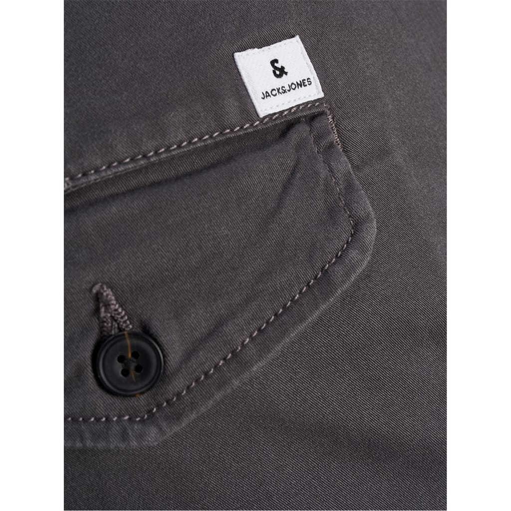 Jack & Jones cargo pants offer a regular fit with a cuffed leg design. Featuring a zip fly and button closure, these pants are practical and stylish. The addition of pockets enhances their functionality, making them a versatile choice for casual wear. -