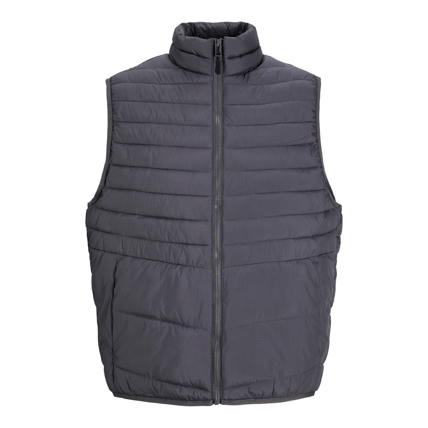This Jack & Jones gilet features a solid pattern with a straight hem and a convenient zipper closure. Designed with a regular fit, it includes practical pockets for added functionality. -