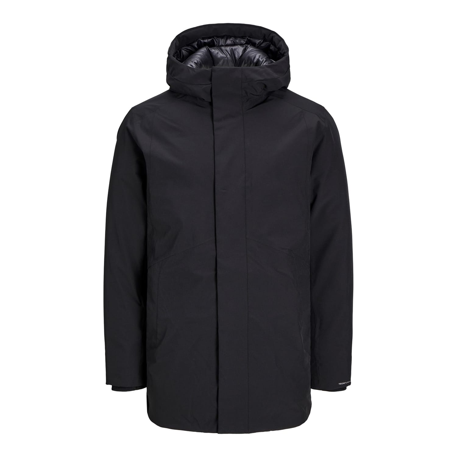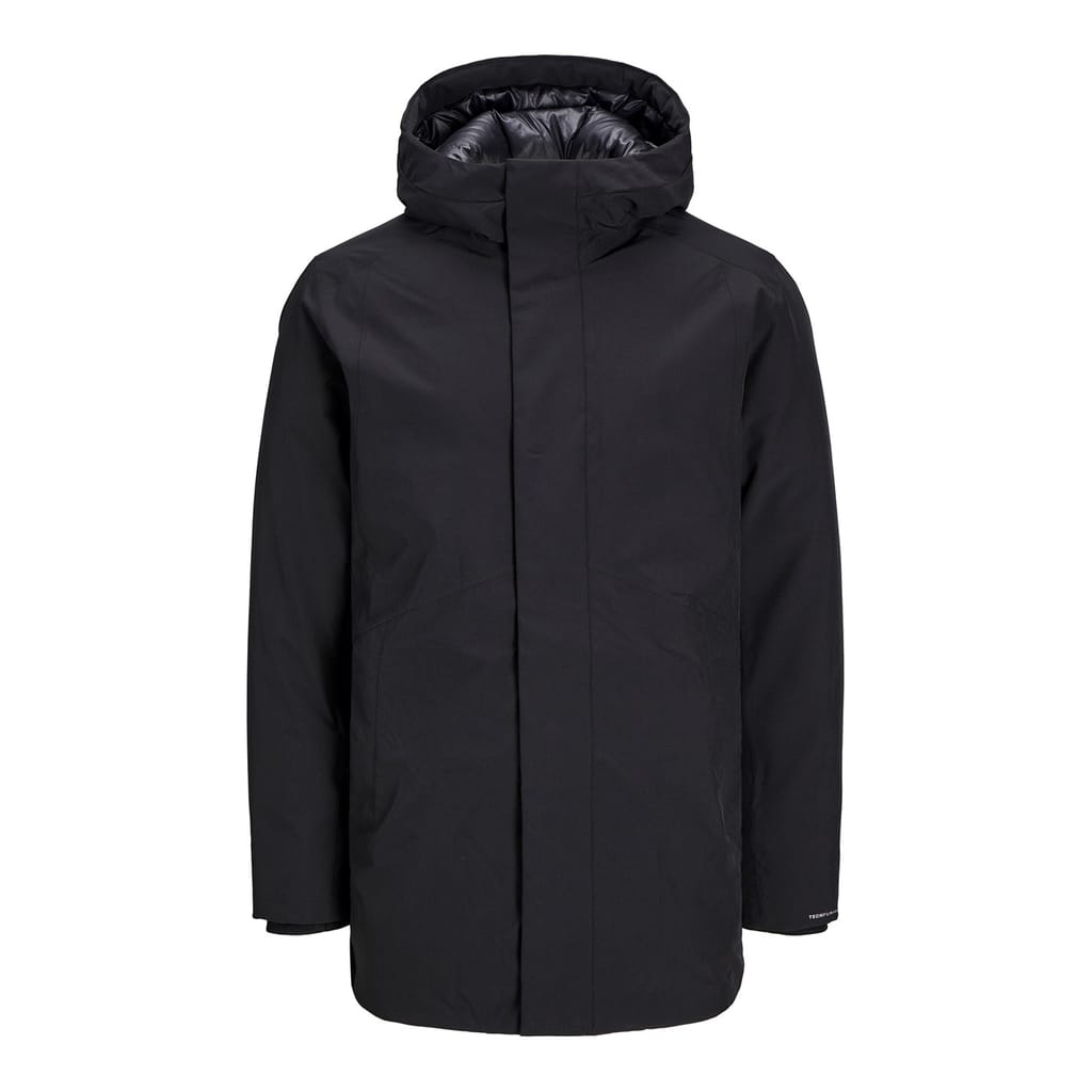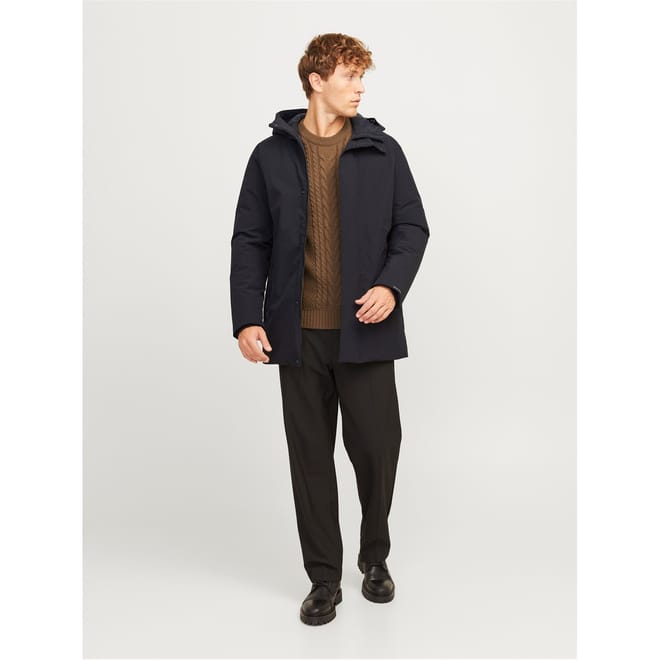 Stay warm this winter with the Jack & Jones parka jacket. Designed for both sport and casual collections, this jacket features a hooded neckline and a regular fit. The solid pattern is complemented by a logo embellishment. It includes a zipper and snap button closure, elasticated cuffs, and a straight hem, making it a practical choice for cold weather. -