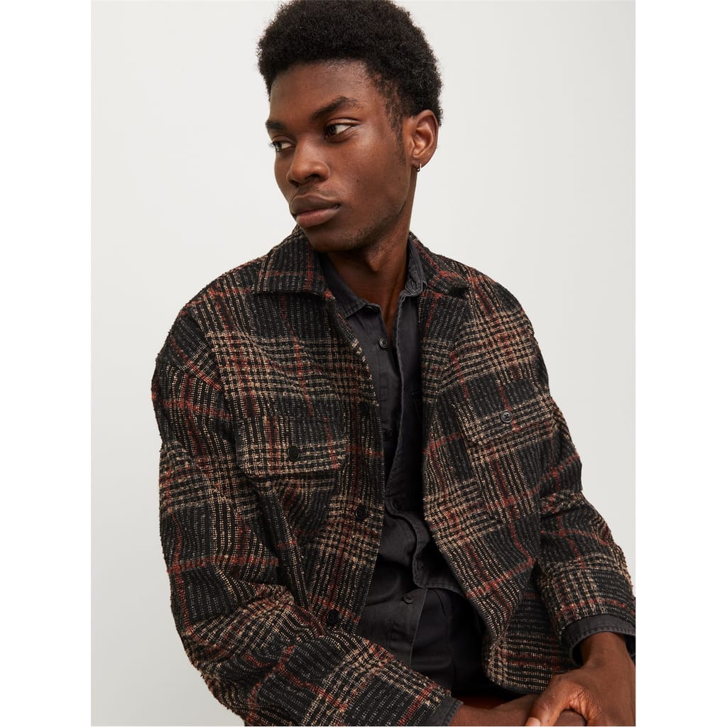 Jack and Jones designer overshirt merges textural interest with a smart, practical design for everyday wear. The lightweight fabric provides a raised, looped texture alongside the practical overshirt shape ideal for seasonal styling over t-shirts or under jackets.