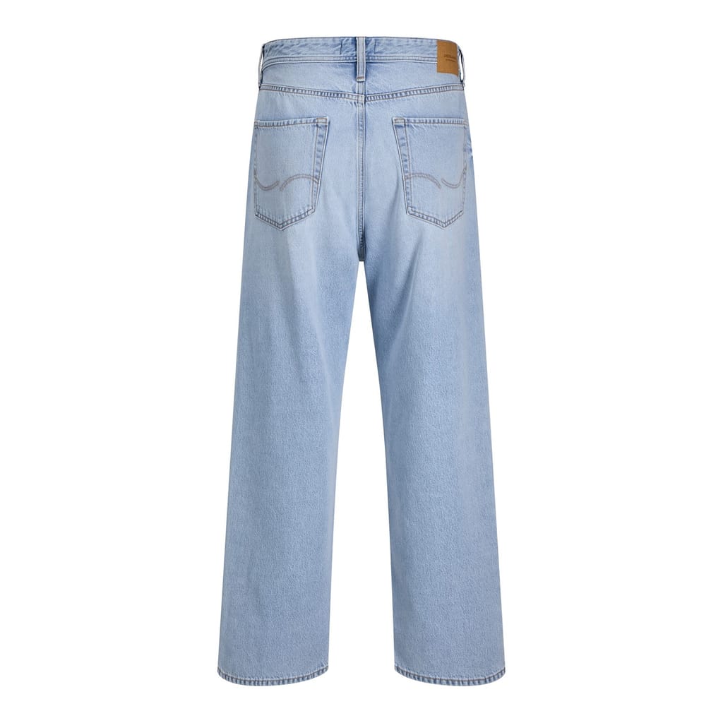 Discover the Jack & Jones jeans featuring a classic five-pocket design. These straight-fit jeans come with a zip fly and button closure, offering a comfortable wide-leg cut. The subtle logo embellishment on the back pocket adds a touch of brand identity, making them a versatile addition to your wardrobe. -