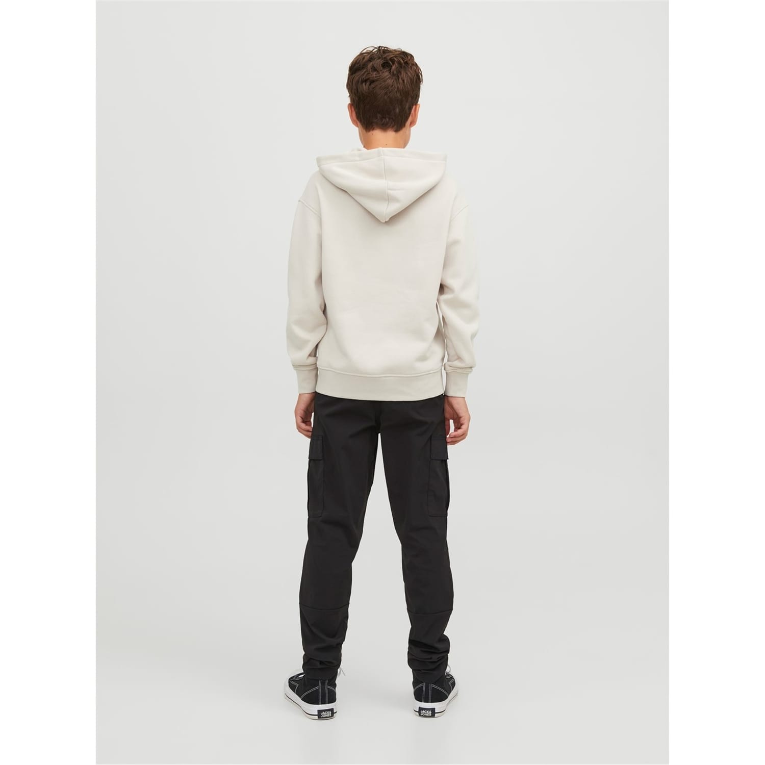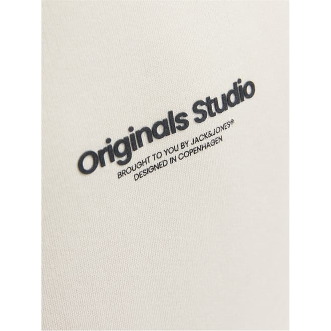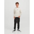 This Jack & Jones top features a hooded neck and long sleeves with ribbed cuffs. The regular fit design is adorned with a graphic print and lettering, complemented by a logo embellishment. A kangaroo pocket adds a practical touch, making it a versatile piece for casual collections. -