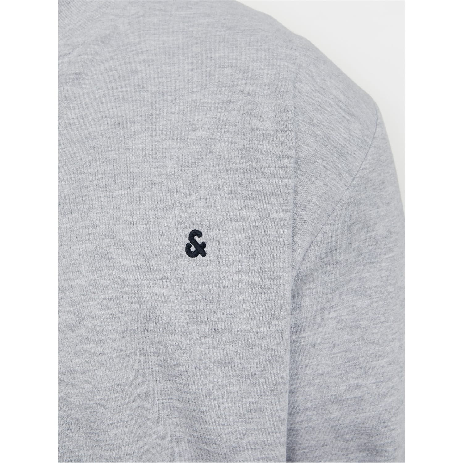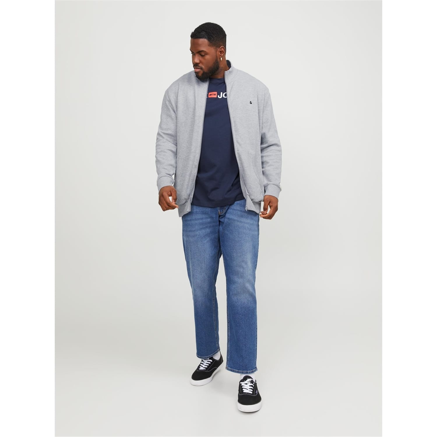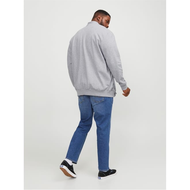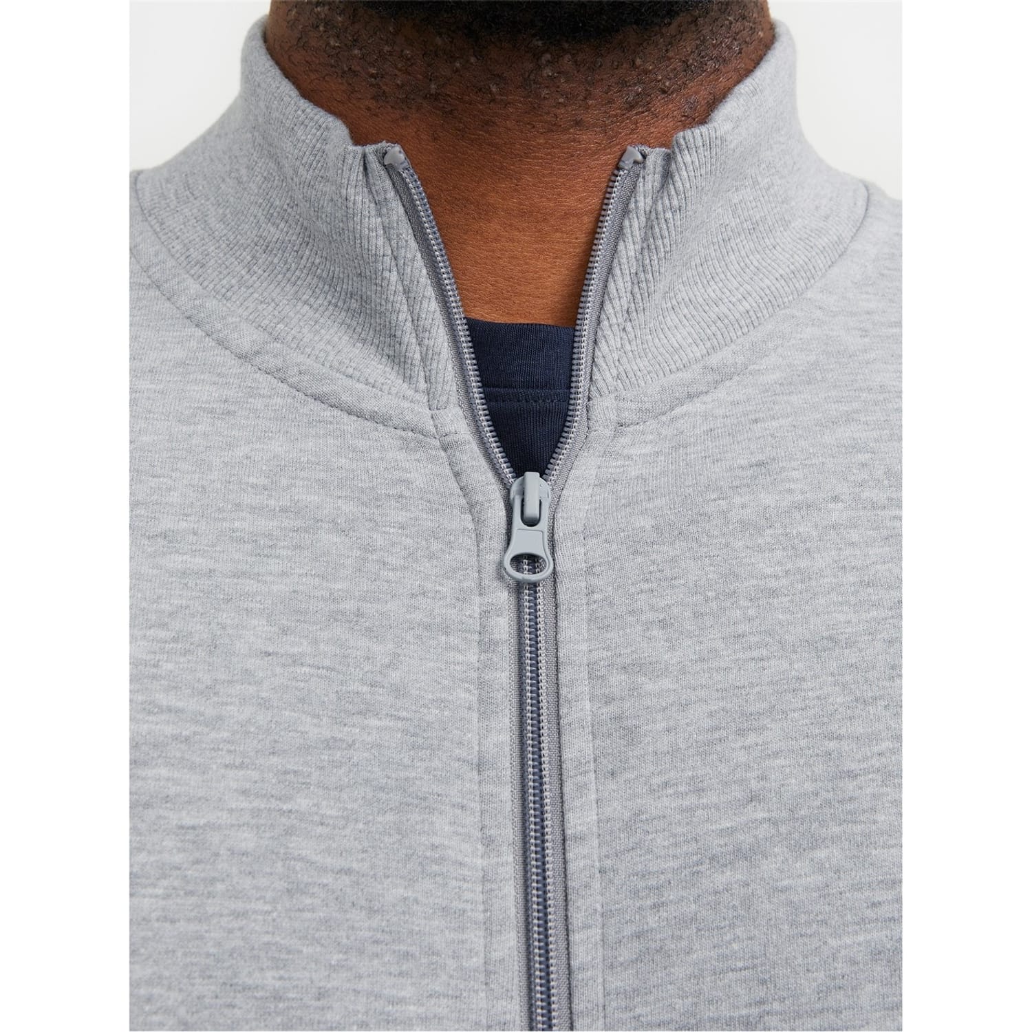 This Jack & Jones sweatshirt jacket features a relaxed fit with a zip neck and zipper closure. The solid pattern is complemented by a ribbed hem and ribbed cuffs, adding a touch of style. The jacket is adorned with a logo embellishment, making it a versatile addition to your wardrobe. -
