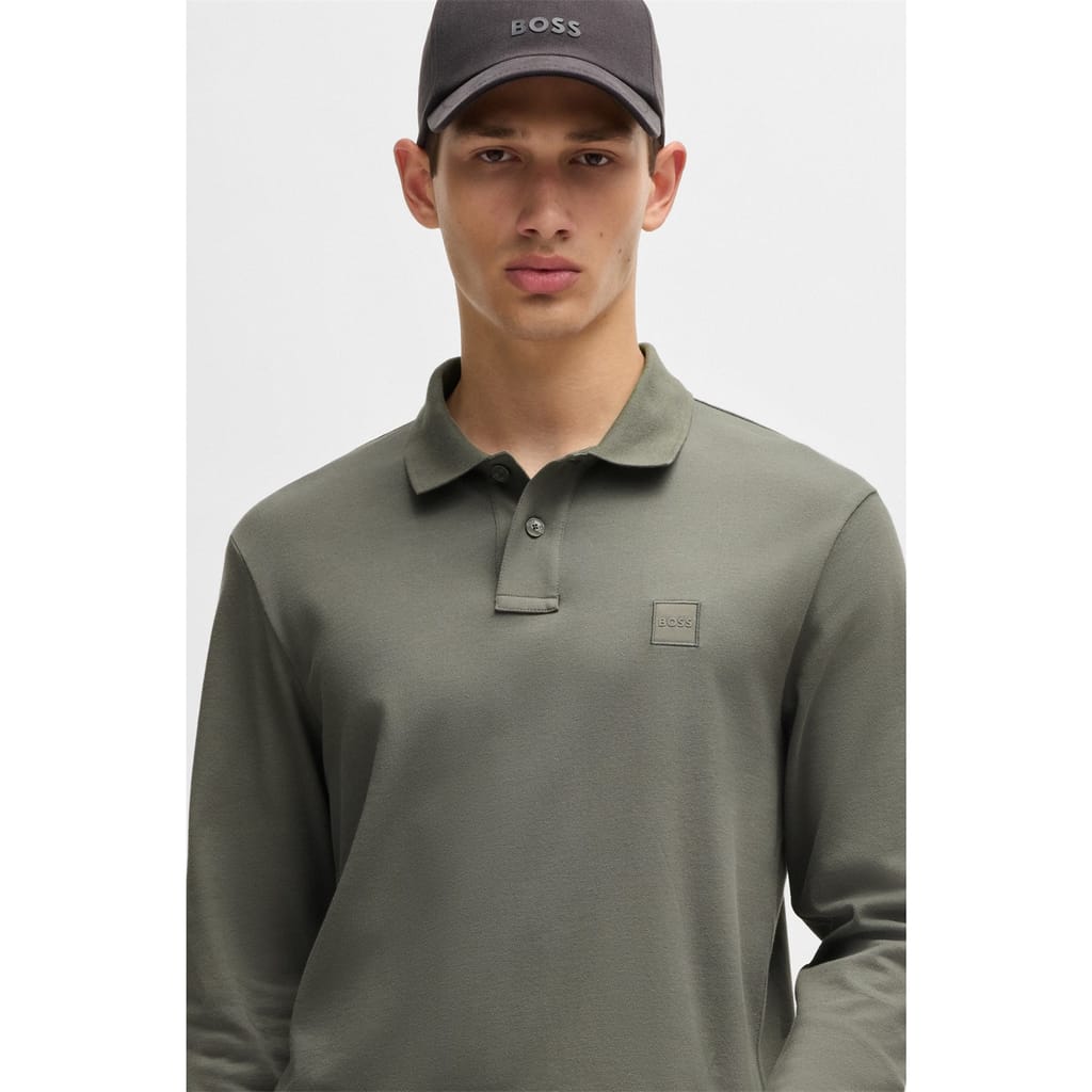 Upgrade your smart-casual wardrobe with the BOSS Long Sleeve Polo Shirt. This classic silhouette features ribbed cuffs and a traditional polo collar for a refined finish, while the sleek solid colourway makes it easy to style. Finished with a tonal BOSS logo on the chest, it’s perfect for layering on cooler days, whether you're heading to the office, dinner, or a weekend event.