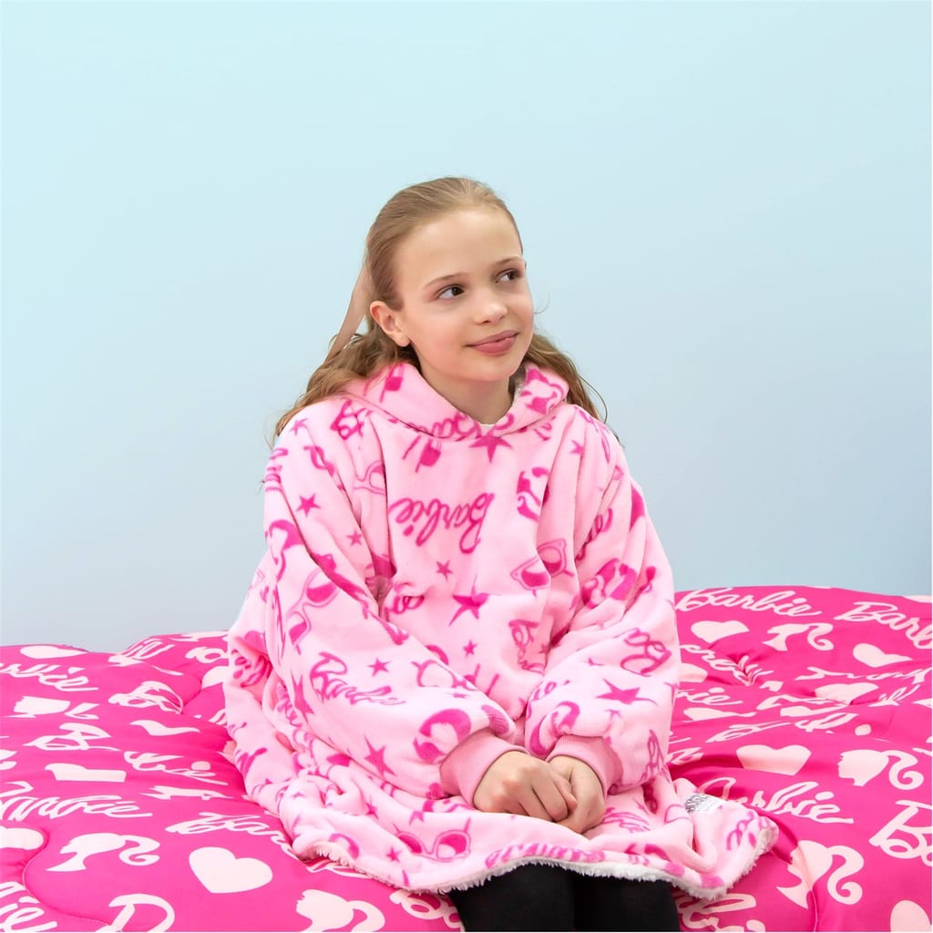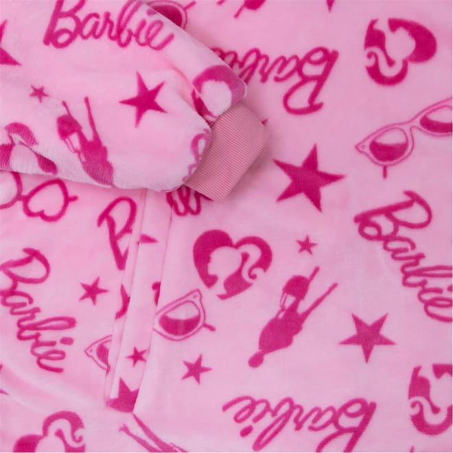 Embrace comfort with the Barbie fluffy robe from the loungewear collection. This relaxed fit piece features a hooded neckline and ribbed cuffs, offering a cosy feel. The graphic print adds a playful touch, while the logo and pocket embellishments enhance its style. -