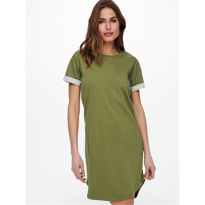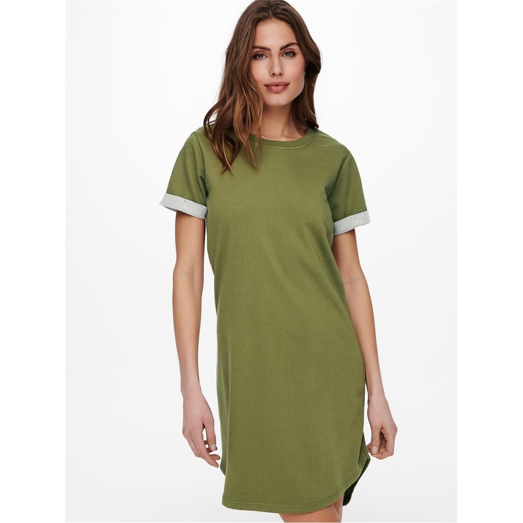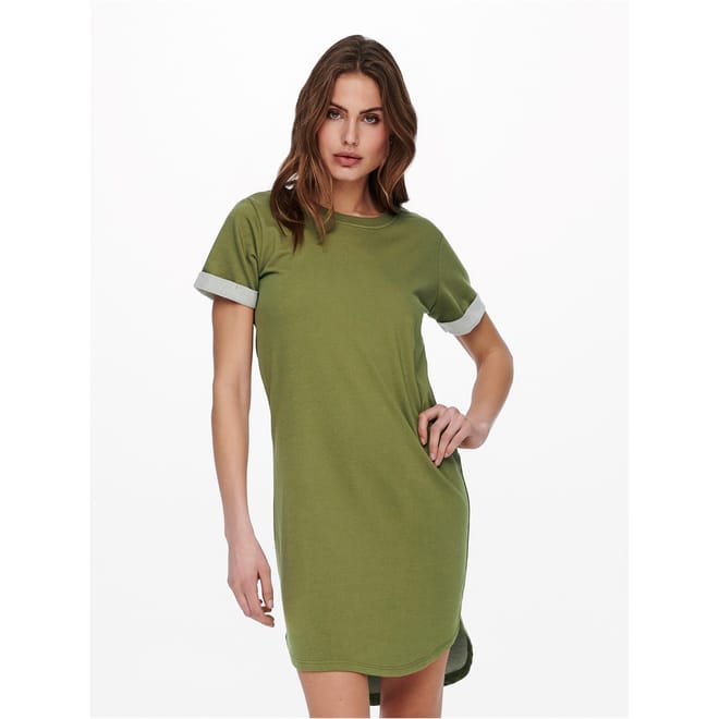 This Only mini t-shirt dress features a solid pattern and a crew neck, offering a casual yet stylish look. The short sleeves with rolled cuffs add a touch of detail, while the curved hem enhances its modern appeal. Designed in a regular fit, this dress is perfect for those seeking comfort and simplicity in their wardrobe. -