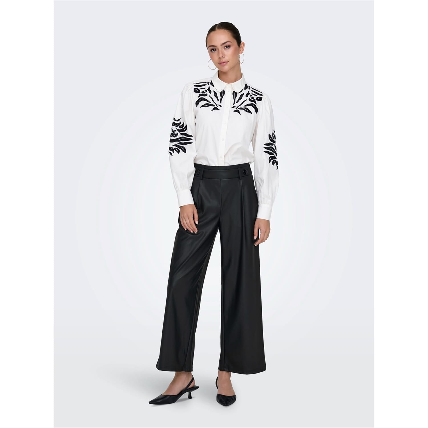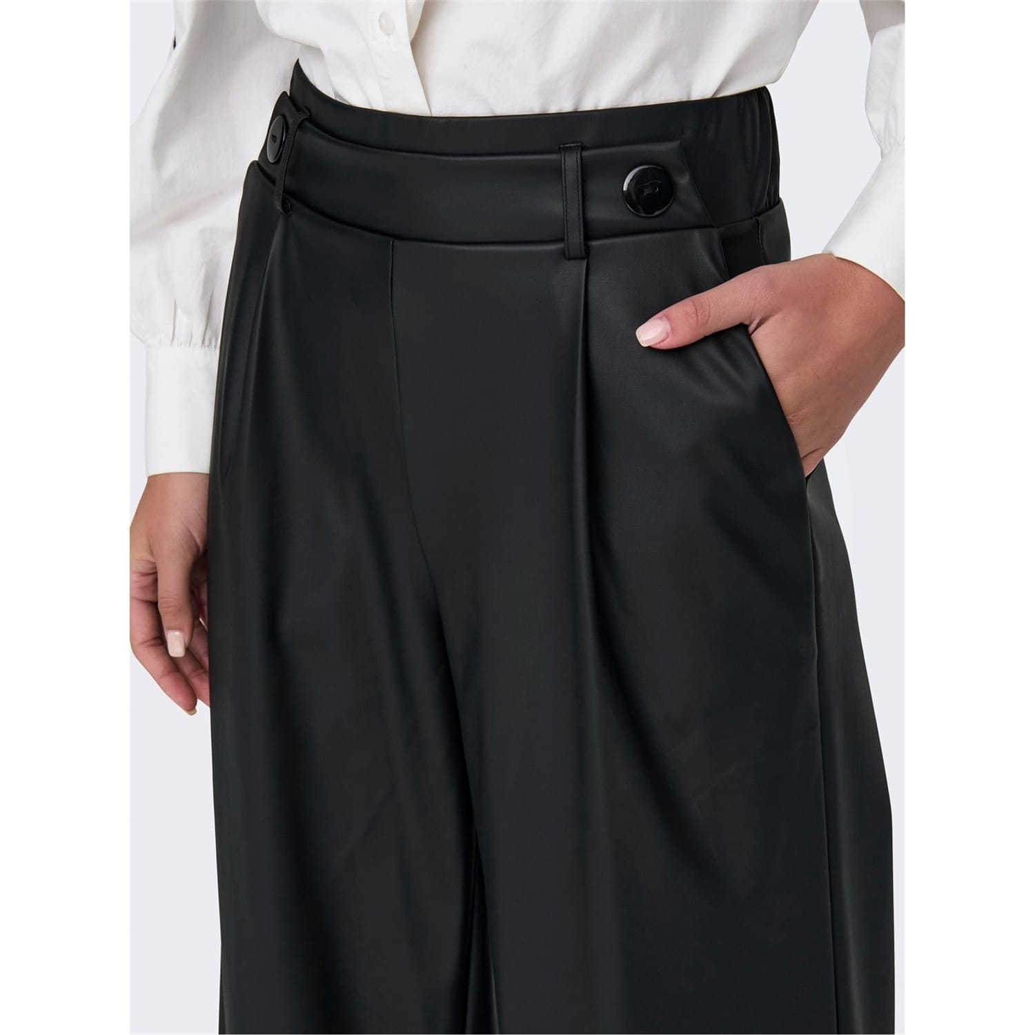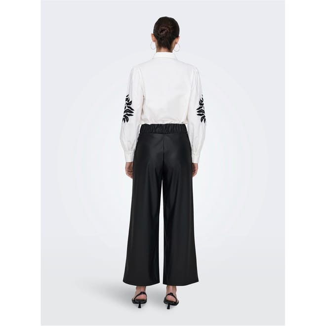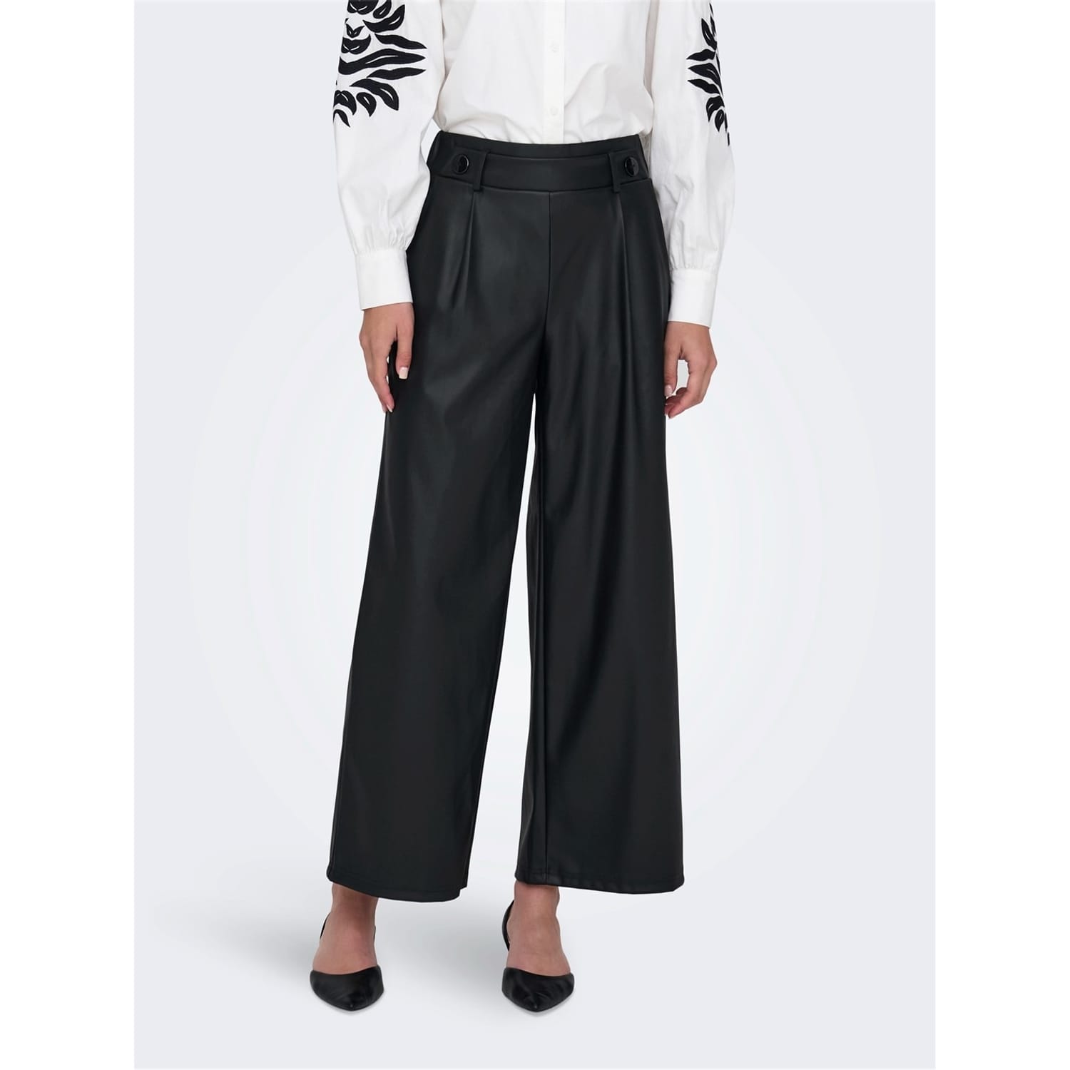 Discover the Only palazzo trousers, featuring a wide leg cut and wide fit for ultimate comfort. These trousers come with belt loops, a front button, and a zip fly closure, ensuring a secure fit. Perfect for those seeking a blend of style and ease, these trousers are a versatile addition to any wardrobe. -