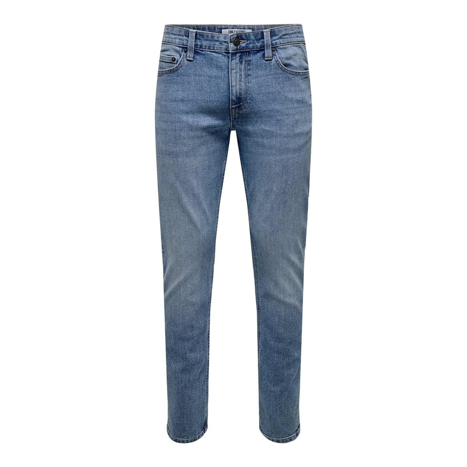 Discover the Only & Sons pants, featuring a slim fit and a button closure. These casual trousers are designed with practical pockets, offering both style and functionality. Perfect for those seeking a blend of comfort and modern design. -