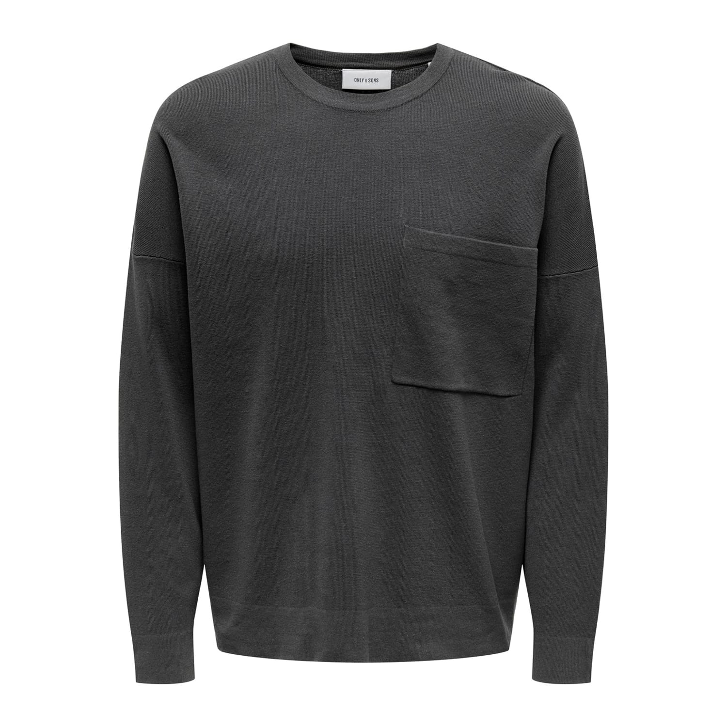 This Only top features a relaxed fit with long sleeves and a crew neck. The solid pattern is complemented by a practical pocket, while ribbed cuffs add a touch of detail. -