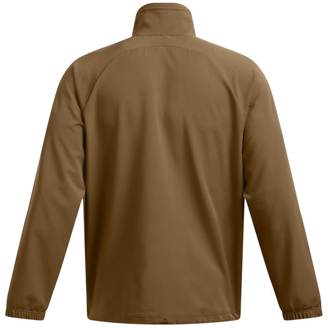 This Under Armour anorak jacket features a zip neck and raglan sleeves, offering a relaxed fit. The solid pattern and straight hem create a sleek look, while the zipper closure ensures practicality. Embellished with a logo, this jacket combines style and functionality. -