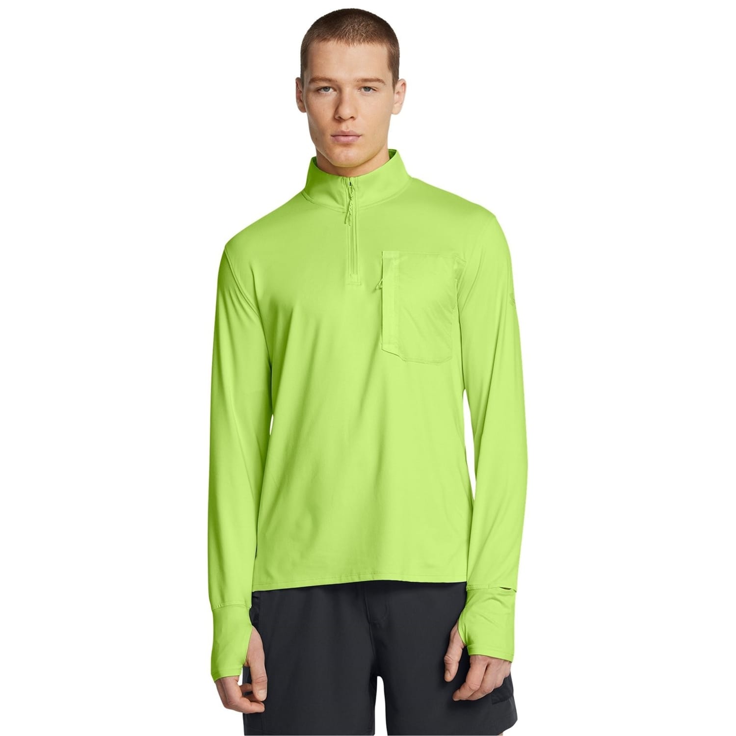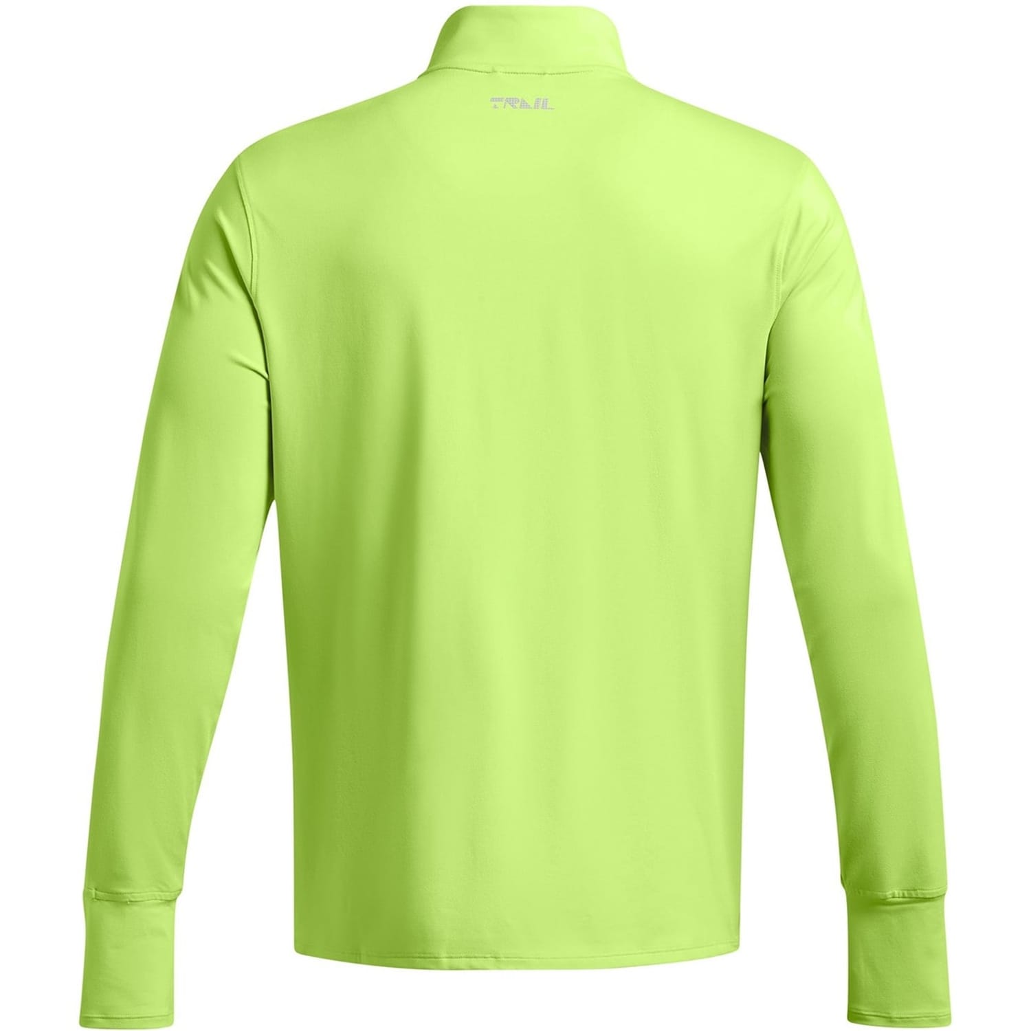 Under Armour trail top designed for performance. This long sleeve top features a quarter zipper and a zip neck, offering a regular fit. The solid pattern and thumb hole sleeves enhance its functionality, making it ideal for active pursuits. -