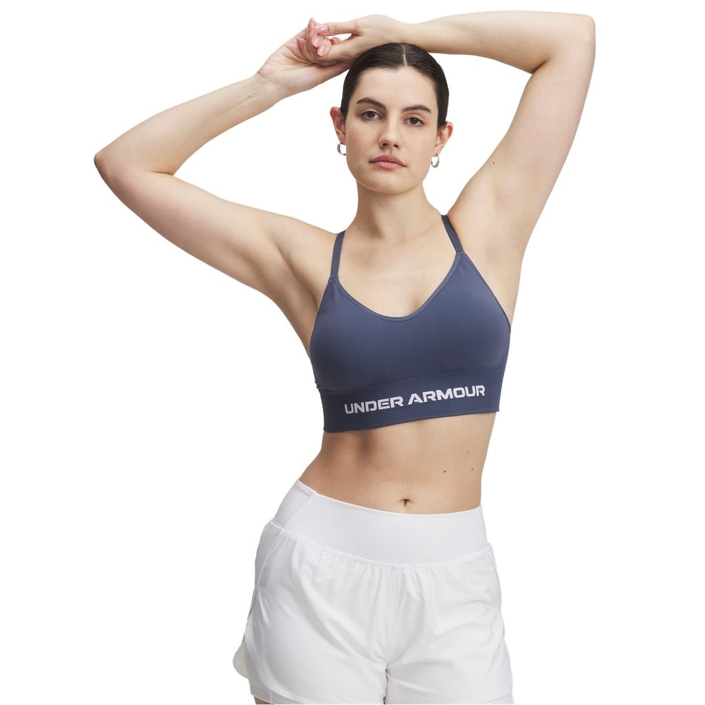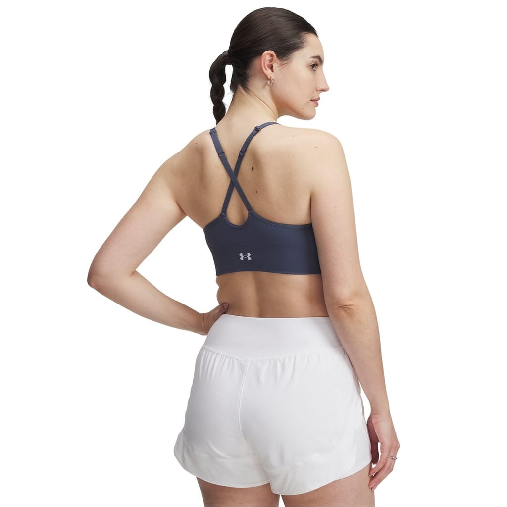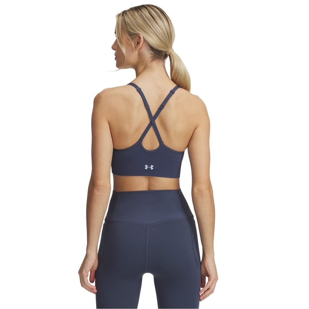 This Under Armour top is designed for sporting activity, featuring a sleeveless design with spaghetti straps and a V-neck. It offers a snug fit, ideal for low-impact activities. The solid pattern adds a sleek touch to this functional piece. -