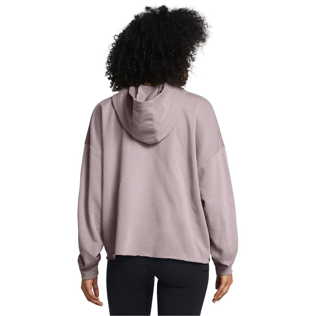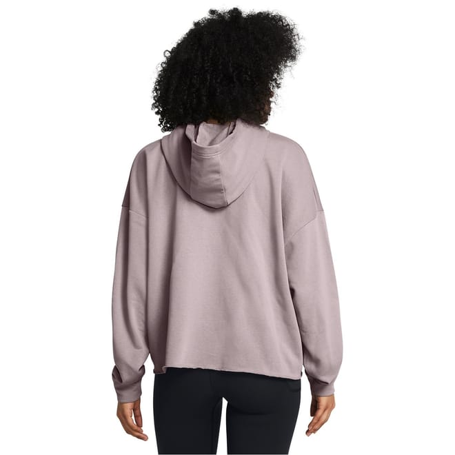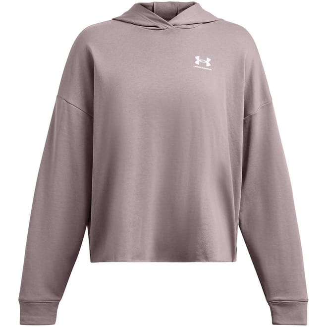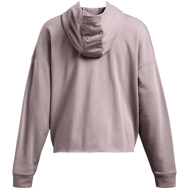The Under Armour UA Rival Terry top features a hooded neck and long sleeves with a drop shoulder design. Crafted in a solid pattern, this cropped top offers a relaxed fit and is finished with ribbed cuffs for added comfort. -