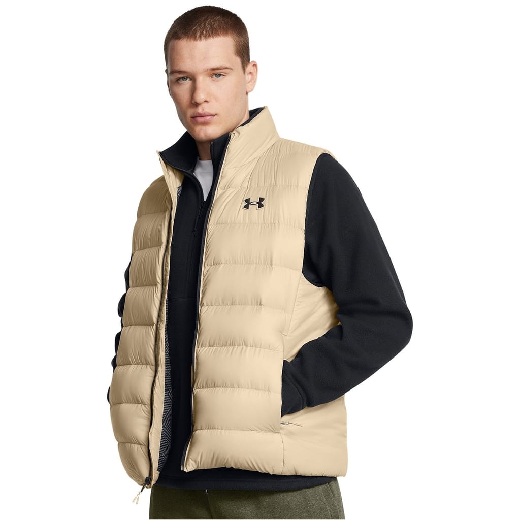 Under Armour's Legend Gilet balances warmth with movement. This streamlined padded vest features targeted down fill insulation for adaptable performance and core body warmth, making it a lightweight puffer designed for athletic performance whether you run or play golf during winter outdoor activities.