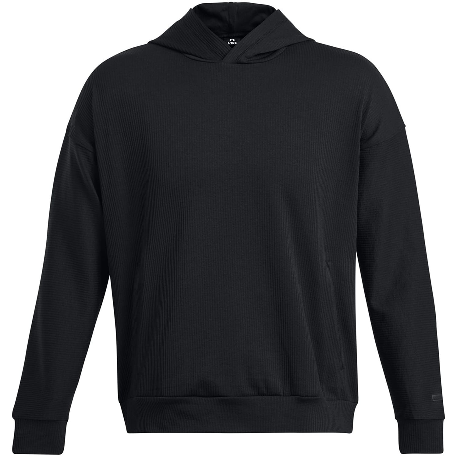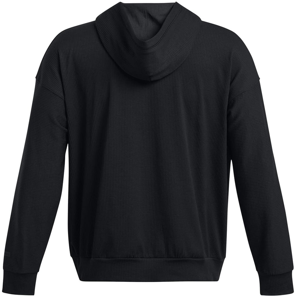 This Under Armour top features a hooded neck and a ribbed pattern, offering a relaxed fit. The long sleeves are complemented by ribbed cuffs, adding a touch of detail to the design. -