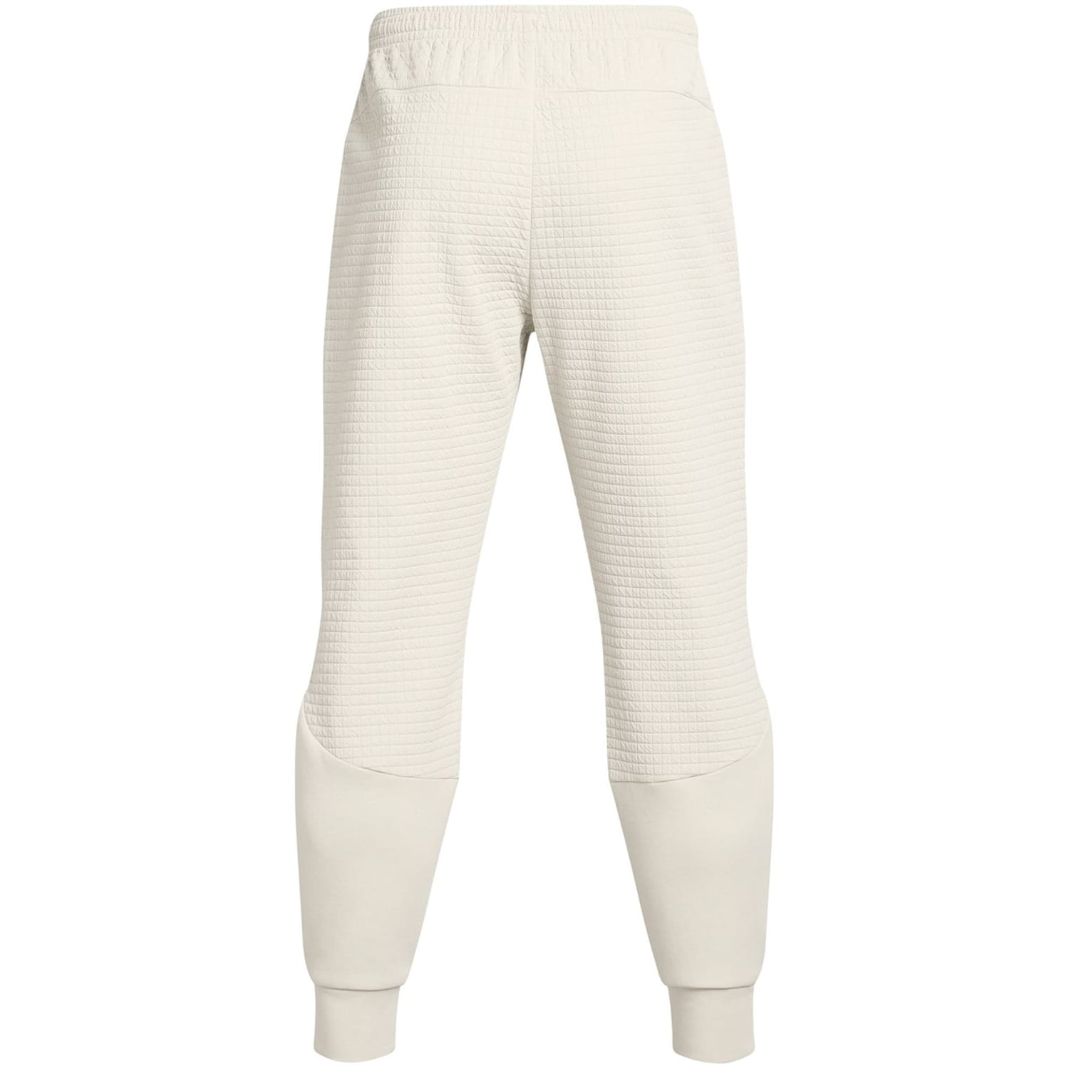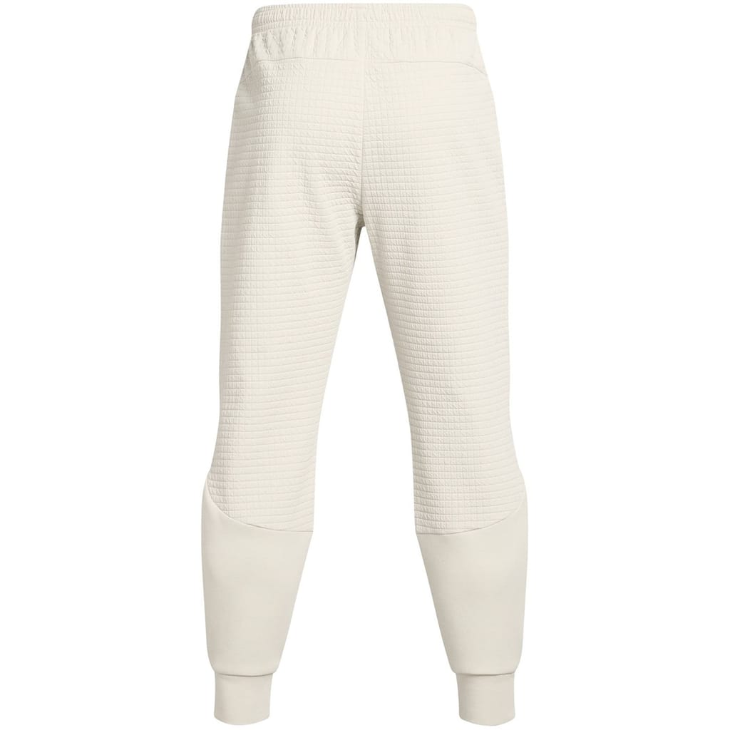 Under Armour joggers feature a textured design with a drawstring closure for a secure fit. These athletic joggers are adorned with a logo, offering a stylish yet functional choice for active wear. -