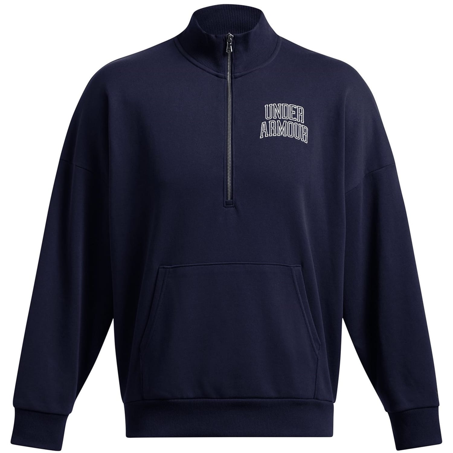 Discover the Under Armour top, featuring a quarter zipper and a zip neck for a modern touch. This long sleeve design offers a relaxed fit with drop shoulder style, complemented by ribbed cuffs and collar. The solid pattern adds a classic appeal, making it a versatile addition to your wardrobe. -
