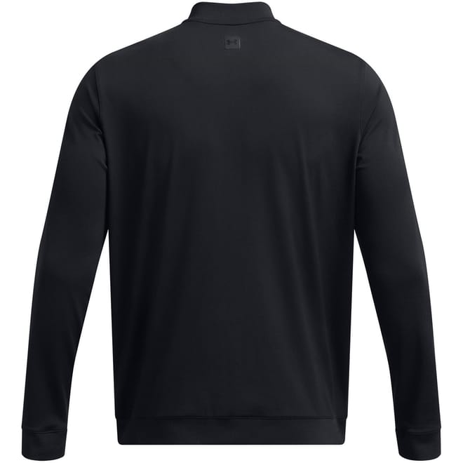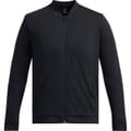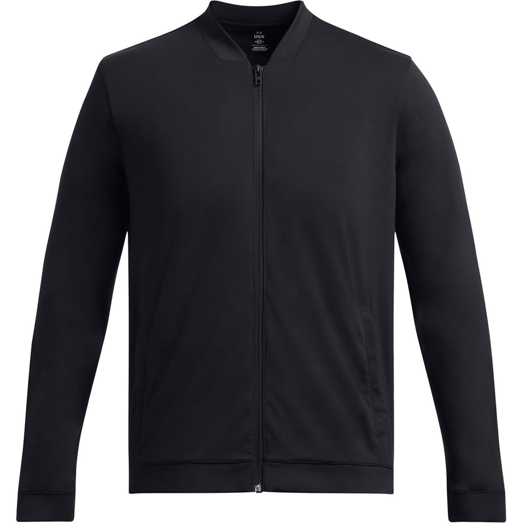The Under Armour bomber jacket is a performance piece from the activewear collection. It features a relaxed fit with a solid pattern, bomber collar, and ribbed cuffs and hem. The jacket is designed with a zipper closure and includes a logo embellishment, offering both style and functionality. -