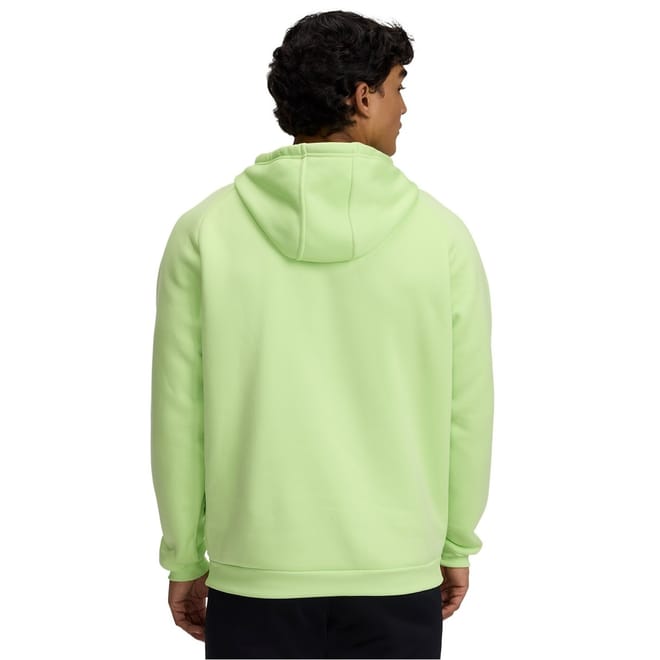 Under Armour top features a hooded neck and long raglan sleeves, offering a regular fit. Designed for performance, it includes ribbed cuffs for added comfort. The solid pattern adds a sleek touch, making it a versatile choice for various activities. -