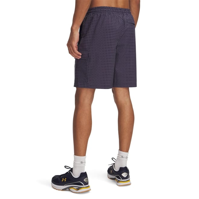 Under Armour cargo shorts feature a geometric pattern and are designed for casual wear. These shorts come with a drawstring closure and utility pockets, offering both style and functionality. Perfect for those who appreciate a blend of practicality and modern design. -