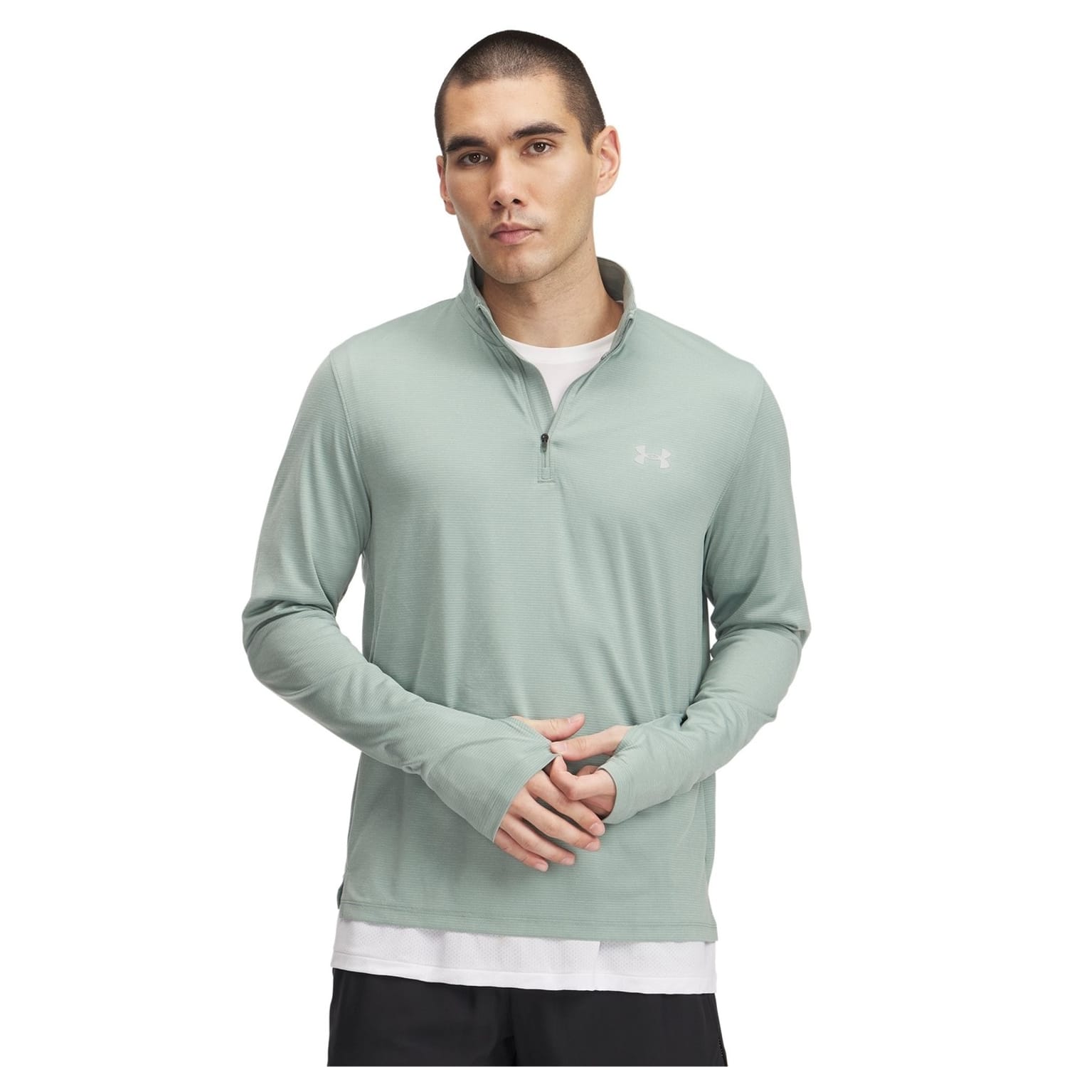 Under Armour's Launch 4 Zipped Long-Sleeve Performance Running Top pairs comfort with practical design for running. This athletic activewear shirt features a streamlined design with a zipper for adaptable comfort, made with sport fabric designed for movement and comfort during workout sessions.