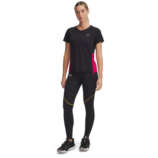 Under Armour running leggings are designed for performance. Featuring a drawstring closure, these leggings ensure a secure fit during your run. The iconic logo adds a touch of brand recognition, making them a reliable choice for athletic activities. -